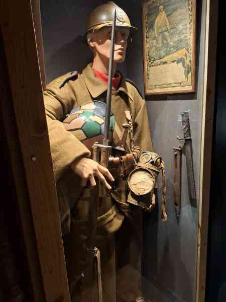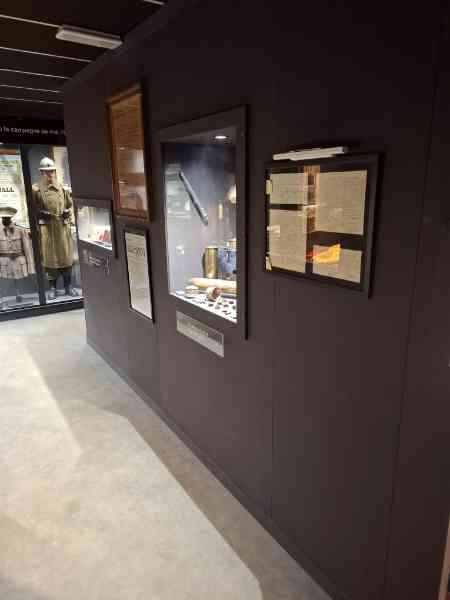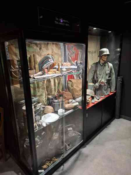 Longtemps sis dans les locaux du premier étage de l'école communale d'Aubin-Neufchâteau, le musée du fort se trouve maintenant au plus près de l'entrée de temps de guerre du fort et toujours dans la rue du colonel d'Ardenne. Il est constitué de dix conteneurs de grande capacité dont sept consacrés aux collections du fort et trois réserves au locaux de l'association et aux facilités. Et comme une petite image peut être plus parlante qu'une longue explication je vous livre ci-dessous quelques unes des vitrines disposées tout au long du parcours immersif qu'offre ce musée. Le moteur JuMo 210, presque complet, qui équipait le Messerschmitt Bf 109, le Heinkel He 112, le Messerschmitt Bf 110A et le Junkers Ju 87A (Stuka), retrouvé par hazard lors de labours en Hesbaye, à désomais rejoint son propriétaire légitime, après avoir séjourné de nombreuses années dans le bloc d'entrée de temps de paix, mais nous en avons conservé les photos que vous trouverez permi celle ci-dessous.