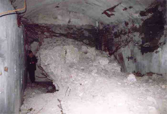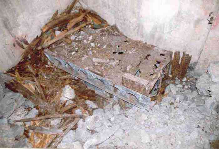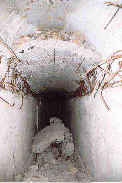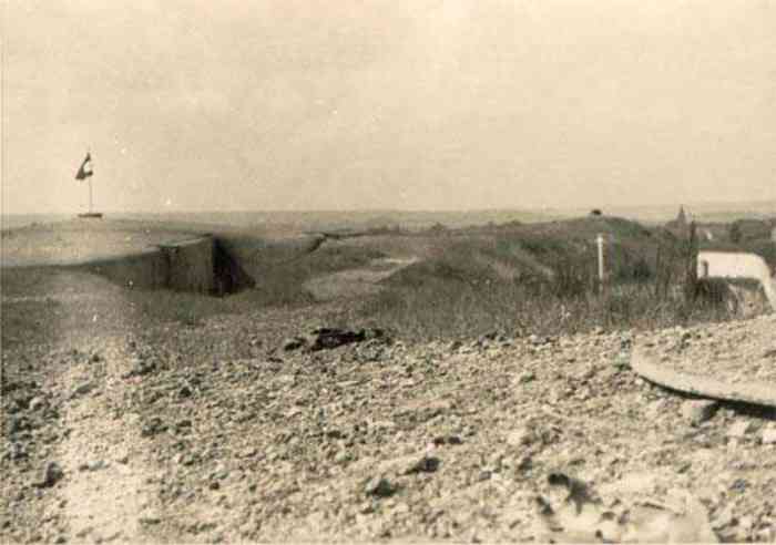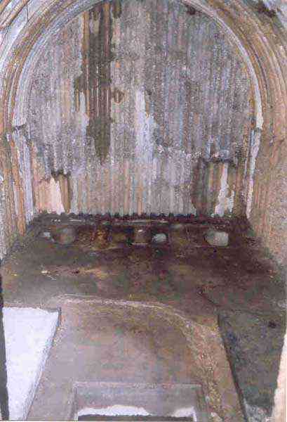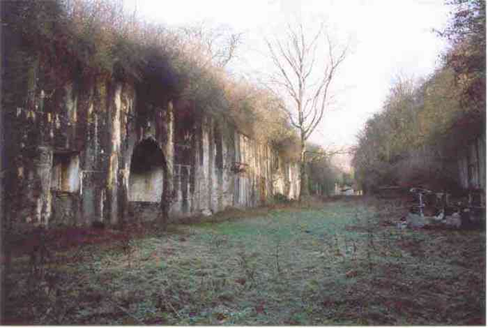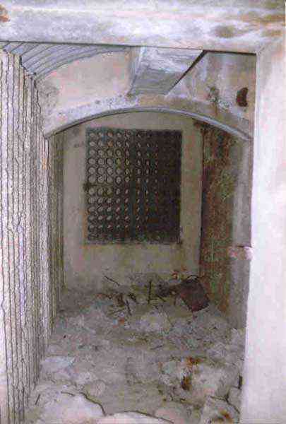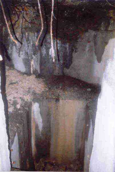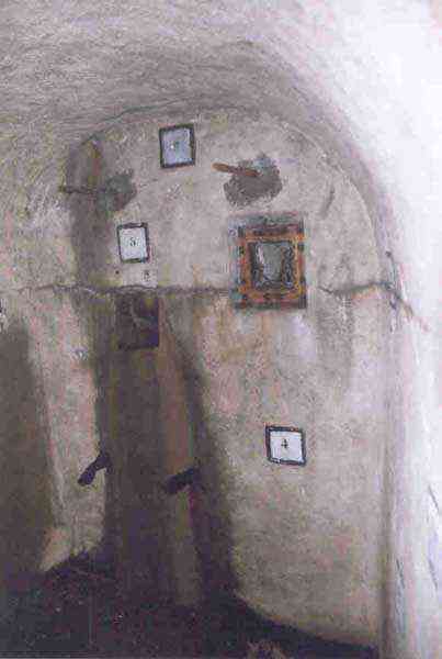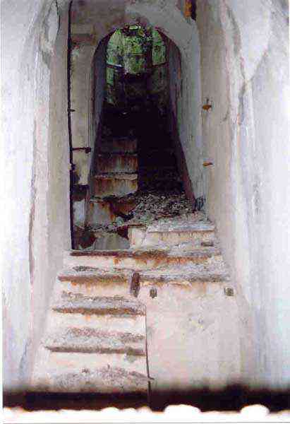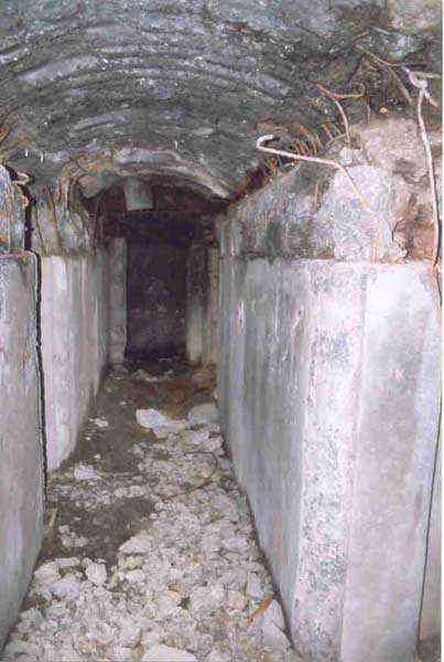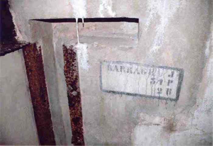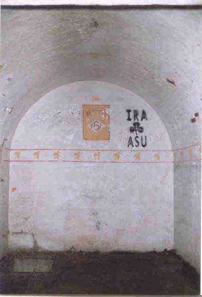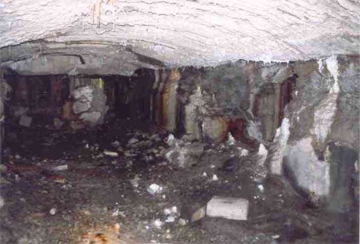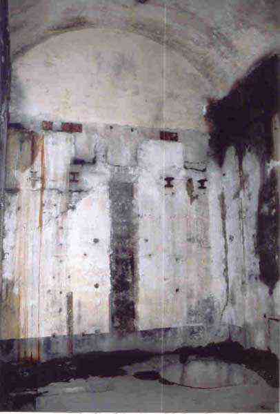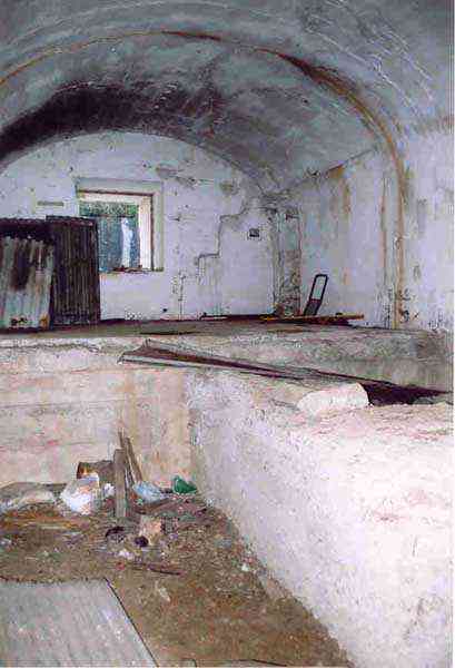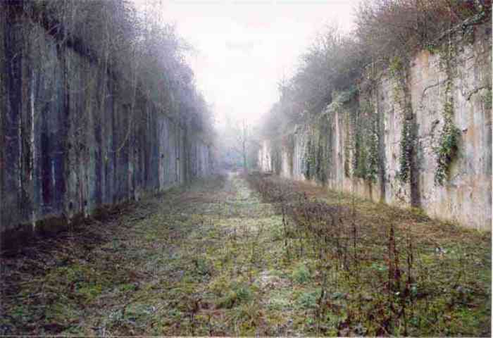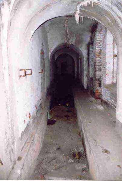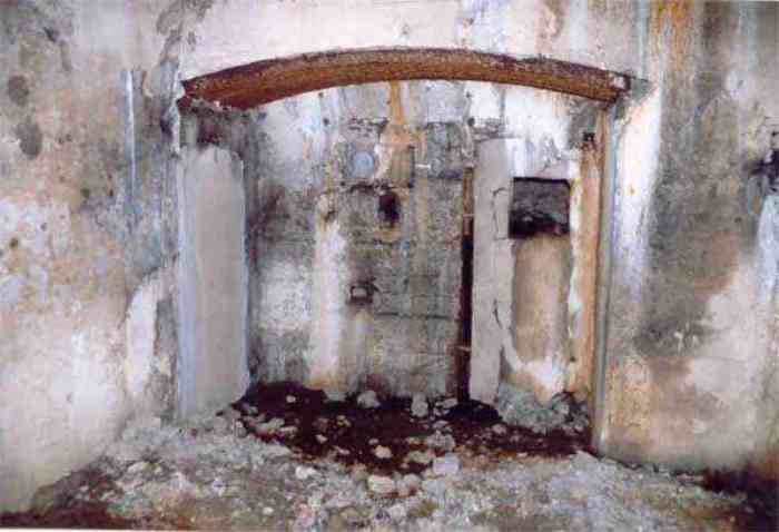 Fortified Position of Namur, fort belt, Fort Andoy, east-southeast of the city, 1888-1892. 223 m/asl. Armament in 1914: 1 cupola 2 x 15 cm, 2 cupolas 1 x 21 cm, 2 cupolas 2 x 12 cm, 4 turrets 1 x 5.7 cm, 1 armored searchlight, 8 cannons 5.7 cm for flanking. This is a large triangular fort with a wide curtain wall at the gorge. It is the only fort on the Meuse that, during the combats of 1914, had to deplore the death of an officer: Lieutenant TASNIER hit in the head by a shell splinter that passed under the vault of a dormitory window in the gap left by the beam barrier. Andoy is reputed to have been targeted between 22 and 24 August 1914 by, according to sources, 450 to 600 305 mm shells. In fact, the Germans carried out extensive consolidation work there, notably the assembly room whose flanks were clad with concrete walls one meter thick. Despite the rearmament of the interwar period, the German modifications are still very visible, such as the airlocks in the escarp circulation corridor or the singular air intake trench in the same corridor at salient III. The most notable modifications due to rearmament are: a shallow quadrilateral; an endless air gallery, nearly 1,200 m long; air distribution hatches located very low in a trench next to the fan base, some wall frescoes in the TTR room grafted onto the air gallery, a hoist for 75 mm shells, of the Namur type (as opposed to the models of the rearmed Liège forts), three-quarters buried at salient I. Some rooms are completely devastated, such as the firing chambers of the casemates, the decontamination room and, generally, all those of the counterscarp. This fort is singularly poor in wall inscriptions, except in two rooms of the left half-escarp at the gorge. Private property (01/2006).