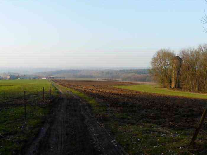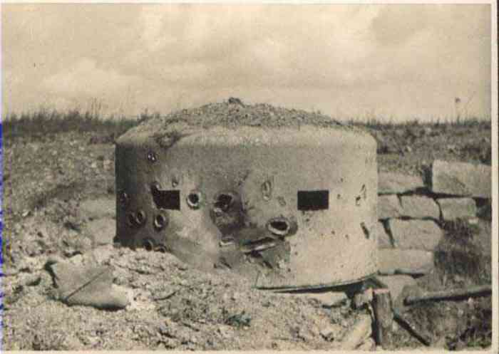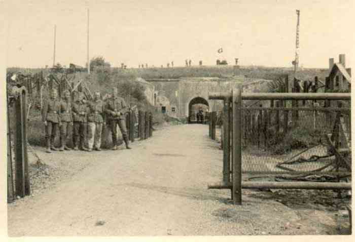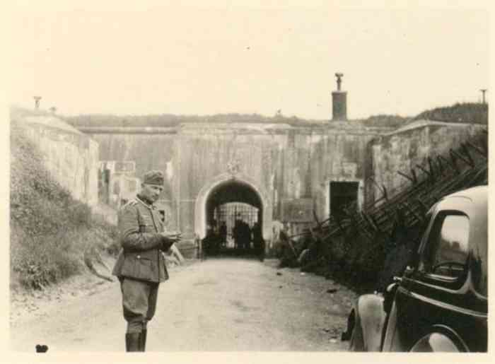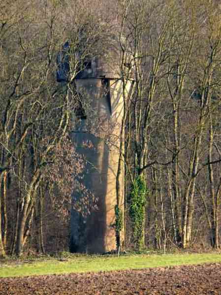 Befestigte Stellung Namur, Festungsgürtel, Fort Andoy, ostsüdöstlich der Stadt, 1888-1892. 223 M/ü. M. Bewaffnung 1914: 1 Kuppel 2 x 15 cm, 2 Kuppeln 1 x 21 cm, 2 Kuppeln 2 x 12 cm, 4 kleine Kuppeln 1 x 5,7 cm, 1 gepanzerter Suchscheinwerfer, 8 Kanonen 5,7 cm zur Flankierung. Es handelt sich um ein großes dreieckiges Fort mit breiter Kurtine an der Kehle. Es ist das einzige Fort an der Maas, das während der Kämpfe von 1914 den Tod eines Offiziers zu beklagen hatte: Leutnant TASNIER, der am Kopf von einem Granatsplitter getroffen wurde, der unter dem Gewölbe eines Stubenfensters in dem von der Trägersperre freigelassenen Zwischenraum eindrang. Andoy soll zwischen dem 22. und 24. August 1914 nach verschiedenen Quellen 450 bis 600 305-mm-Granaten erhalten haben. Tatsächlich führten die Deutschen dort umfangreiche Verstärkungsarbeiten durch, insbesondere im Versammlungsraum, dessen Flanken mit einem Meter dicken Betonwänden versehen wurden. Trotz der Wiederbewaffnung in der Zwischenkriegszeit sind die deutschen Veränderungen noch sehr gut sichtbar, wie die Schleusen im Verbindungsgang der Eskarpe oder der eigentümliche Luftzuführungsschacht in demselben Gang am Saillant III. Die bemerkenswertesten Veränderungen durch die Wiederbewaffnung sind: ein flaches Viereck; eine endlose Luftgalerie, fast 1.200 m lang; Luftverteilungsklappen, die sehr tief in einem Graben neben dem Ventilatorsockel angebracht sind, einige Wandmalereien im TTR-Raum, der an die Luftgalerie angebaut wurde, ein Aufzug für 75-mm-Granaten, vom Typ Namur (im Gegensatz zu den Modellen der wiederbewaffneten Forts in Lüttich), der zu drei Vierteln im Saillant I eingegraben ist. Einige Räume sind völlig zerstört, wie die Schusskammern der Kasematten, der Dekontaminationsraum und im Allgemeinen alle Räume der Kontreskarpe. Dieses Fort ist auffallend arm an Wandinschriften, abgesehen von zwei Räumen der linken Halbeskarpe an der Kehle. Privatgrundstück (01/2006).