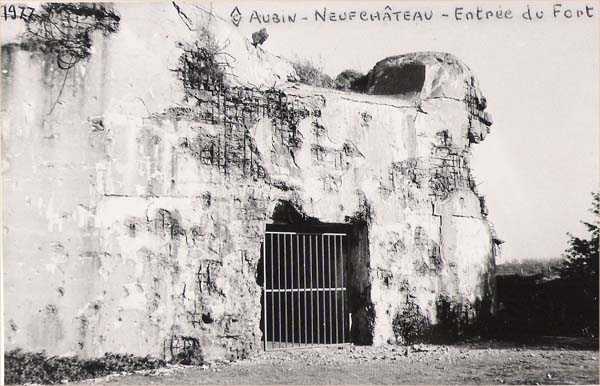 Belgische Befestigung des Zweiten Weltkriegs, befestigte Stellung Lüttich, erste Widerstandslinie, Fort Aubin-Neufchâteau, Friedenseingangsblock B3. Der Eingangsblock ist auf dem Dach mit 3 Kuppeln mit einer Scharte für Maschinengewehre ausgestattet. Es handelt sich dabei jeweils um ein doppeltes Maxim-Maschinengewehr auf schwenkbare Lafette. Der Eingangsblock wird seinerseits durch ein Maxim-Maschinengewehr auf schwenkbare Lafette verteidigt, das jedoch in einer Kasematte neben dem Scheinwerferraum installiert ist. Der Eingang wird durch ein starkes zweiflügeliges Gitter, durch eine seitlich verschiebbare Brücke, die einen 4 Meter tiefen Haha freilegt, und durch ein Maschinengewehr in der Wachstube gesperrt. Drei Handgranatenrutschen vervollständigen die Nahverteidigungsausrüstung dieses Infanterieblocks. Die dem Feind ausgesetzten Wände und das Dach haben eine Dicke von 3,5 Metern. Die Fassadenmauer auf der Freundseite hat eine Dicke von 2,50 Metern. Die Innenwände haben eine Dicke von 1 Meter und die Bodenplatte ist 50 Zentimeter dick. Eine gasdichte Schleuse verhindert das Eindringen von Kampfgasen und ermöglicht eine gute Druckbeaufschlagung des gesamten Kampfblocks. Diese Druckbeaufschlagung hat zudem den Vorteil, die Waffengase nach außen abzuführen. Während der Kämpfe wurde der Eingangsblock heftig von einer 8,8-cm-Kanone angegriffen, die beabsichtigte, die Kuppel an der Nordwestecke des Blocks zu durchschlagen, was jedoch nicht vollständig gelang. Dem Friedenseingangsblock B3 zugeteilt, jedoch ohne ausschließliche Zuweisung, da sie je nach Bedarf und ihren Fähigkeiten auch anderen Posten dienen können, finden sich 33 Mann Offiziere, Unteroffiziere und Soldaten, darunter…