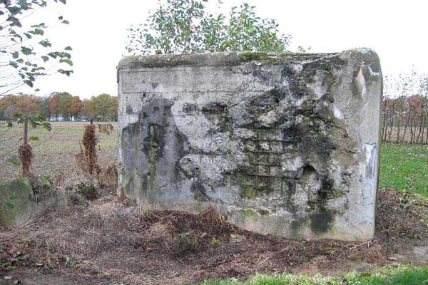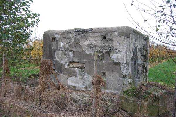 Fortified Position of Liège, third line of resistance, bridgeheads, Argenteau bridgehead, shelter Ag2, 139 m/asl. It is located 400 m north-northeast of shelter Ag1 along the pedestrian path that extends Rue du Voué Juetta at the edge of an orchard. It is a type PA model A shelter with one embrasure for a machine gun.
