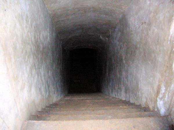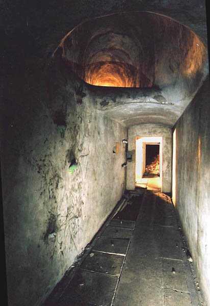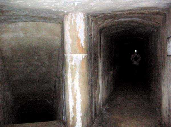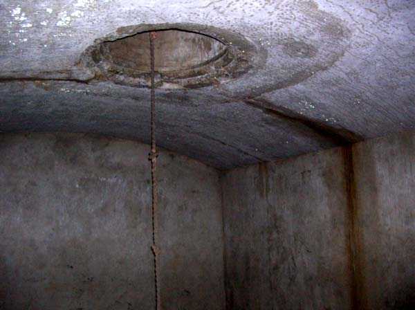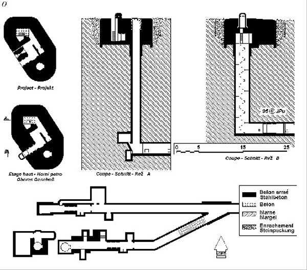 Belgian fortification of the Second World War, fortified position of Liège, first line of resistance, fort of Aubin-Neufchâteau. The observation block O was equipped, on the roof, with a GFM cupola (observation and machine gun) with 6 closable loopholes and a retractable tube of 18 m to suck in fresh air. In the initial plans, it was to have a secondary exit but this was arranged as an emergency exit. The retracted air intake was attacked with a 50 kg hollow charge which created the crater that can be seen in one of the photographs. Contrary to what happened at Eben-Emael protected against 220 mm weapons, these charges were not effective against Fort Aubin. The latter was built to resist weapons of 420 mm caliber. Like all the others, this block is accessible through the underground galleries via a hermetic and armored airlock. To get there one passes in front of the automatic radio repeater room whose antenna shaft served for the evacuation of the excavation earth from the underground barracks. Block O is pressurized to expel the gases from its weapons and prevent the intrusion of any combat gases from the enemy. Currently the shaft is obstructed at mid-height by a hermetic door and by waste thrown from above. The bottom of the air intake tube is completely backfilled with earth and debris. Assigned to the observation, air intake and emergency exit block but not exclusively depending on the needs and skills of each, 18 men officers, non-commissioned officers and soldiers career volunteers and militiamen, including …
