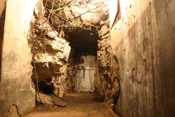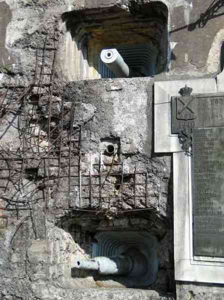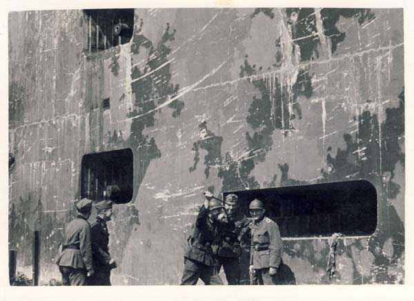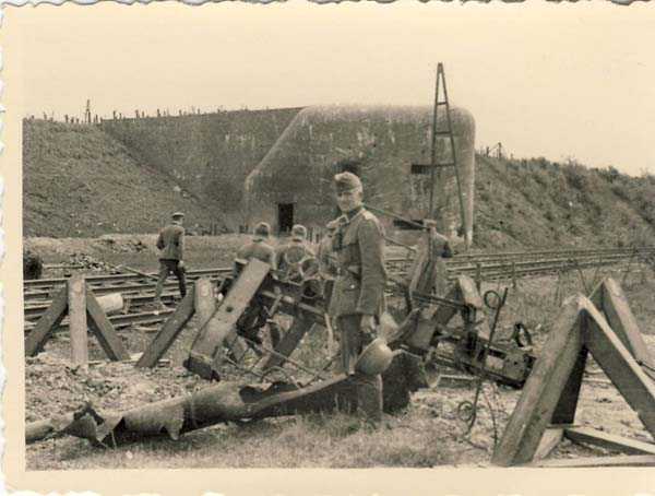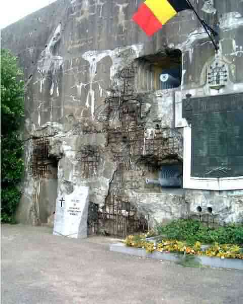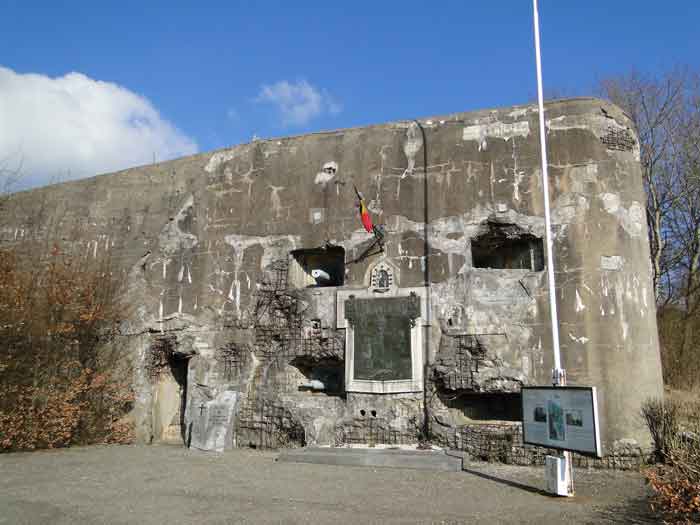 Belgian fortifications of the Second World War, Fortified Position of Liège, first line of resistance, fort of Battice. Block I is located on the counterscarp along the N648 road linking Battice to Aubel and along the ditch housing railway line 38, now disappeared but still used as a walk by lovers of beautiful landscapes. On May 20, 1940, an aircraft bomb penetrated the block through its infantry exit on the façade. Mortar bombs are said to have been stored at that location. The phenomenal explosion killed all the men in the block and caused significant damage still visible. Armament block 1, ground floor: 1 60 mm gun FRC Model 1936, 1 automatic rifle Model 30 for the protection of the patrol exit, 1 searchlight CZ33 with inverted periscopic sight, 1 grenade-launching chute; upper floor: 1 60 mm gun FRC Model 1936, 1 reversible mount for 2 Maxim machine guns 08/15. © René Coune 01/2026