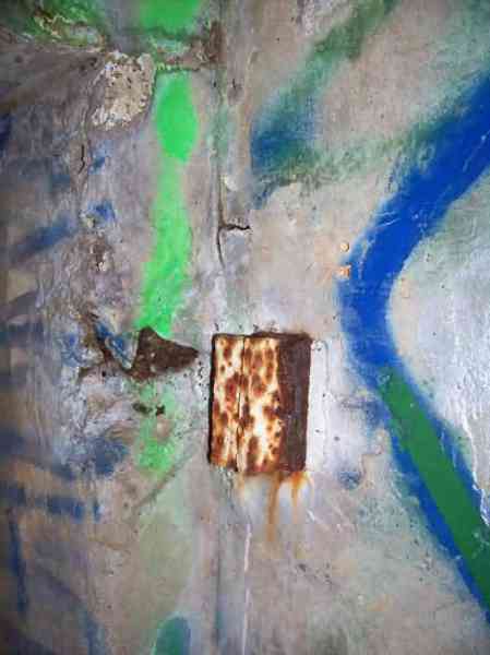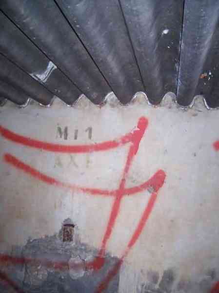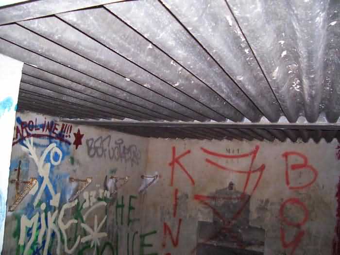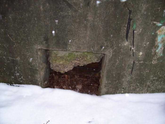 Fortified Position of Liège, second line of resistance, interval shelters. Shelter BE9 is classic with two embrasures for a machine gun on a tripod planted in a clay tray. One finds there the L3 hooks, the consoles for the shelves, but above all paint stains that some call graffiti. Structurally well preserved, it is in a deplorable state but pictures speak better than a long speech.