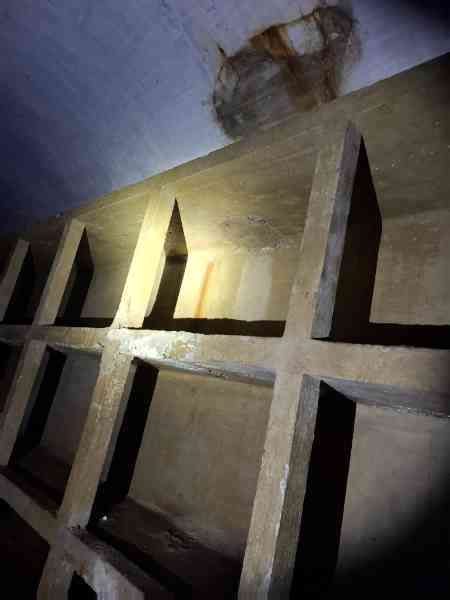 Belgické opevnění z druhé světové války, Opevněná pozice Lutych, první obranná linie, pevnost Battice. Kopulový blok "B Jih", zcela zničený všemi známými prostředky, má již jen své podzemní prostory a podzákladí. Má se stát předmětem budoucí studie. Výzbroj: 1 kopule se 2 120 mm kanóny FRC (Královská slévárna děl) vzor 1931. © René Coune 01/2026