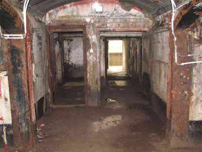 - Die Fenster der Eskarpentrakte werden zugemauert und betoniert. Sie behalten ein Loch, um den Schornstein zu ersetzen, der sich zuvor im Gewölbe befand und als Zielmarkierung für die Schüsse diente