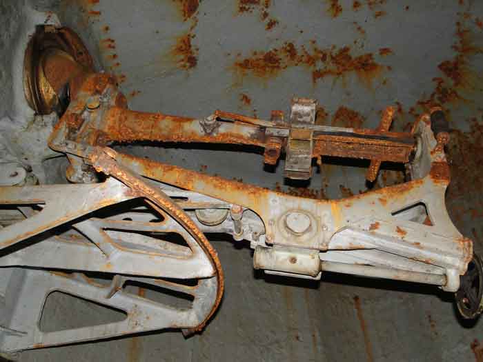 Fortifications belges de la deuxième guerre mondiale, position fortifiée de Liège, première ligne de résistance, fort de Battice, bloc d'artillerie B IV. Le bloc IV se trouve à l'angle sud-est du fort, en bordure de la nationale 3 reliant Aix-la-Chapelle à Liège en passant par Battice et Herve. C'est le bloc qui est situé le plus à l'avant, le plus près de la frontière allemande et le premier à être abordé en venant d'Allemagne. C'est aussi le seul bloc avec tourelle à avoir survécu à la fois aux essais de tirs des Allemands pendant les cinq années d'occupation et à la folie destructrice des ferrailleurs, après guerre. À Battice, tout ce qui peut être remis en état et rendu fonctionnel reçoit toutes les attentions des bénévoles qui veillent sur le grand fort. Cette tourelle n'échappe pas à la règle. Lors de votre prochaine visite, vous pourrez la voir fonctionner et admirer la précision et l'élégance de ses mouvements. Armement en toiture: 1 coupole à éclipse avec 2 canons de 75 FRC Mle 1934 jumelés ( 120 T > type lourd > Battice ), 2 cloches mitrailleuses avec 1 affût pour 2 mitrailleuses Maxim 08/15 ( +/- 54 T > type lourd > Battice ) dont 1 avec un périscope "SOM" et l'autre avec un dispositif lance-fusées. © René Coune 01/2026