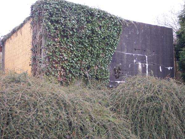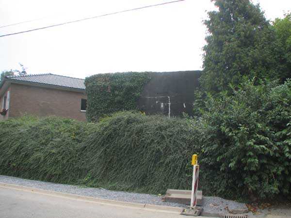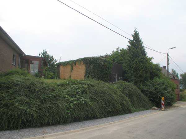 Fortified Position of Liège, second line of resistance, FPL2 Barchon-Meuse interval, shelter BM 1, 161 m/asl. Interval shelter BM 1 Richassa is located on private property in front of a beautiful villa in the municipality of Housse, the owners of which try more or less to conceal it behind a tall evergreen hedge. Structurally it seems in good condition. It seems to serve as a garden shed but we have not yet been able to visit the interior.
