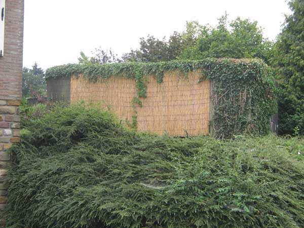 Befestigte Stellung Lüttich, zweite Widerstandslinie, Intervall VSL2 Barchon-Maas, Unterstand BM 1, 161 M/ü. M. Der Intervallunterstand BM 1 Richassa befindet sich auf einem Privatgrundstück vor einer schönen Villa in der Gemeinde Housse, dessen Besitzer ihn mehr schlecht als recht hinter einer hohen immergrünen Hecke zu verstecken suchen. Strukturell scheint er in gutem Zustand zu sein. Er scheint als Gartenschuppen zu dienen, aber wir konnten das Innere noch nicht besichtigen.