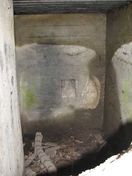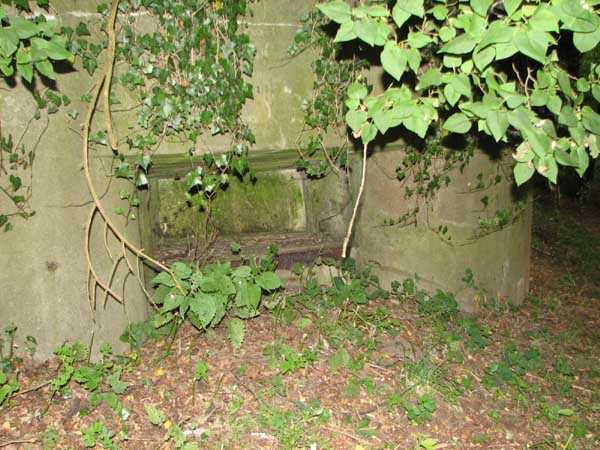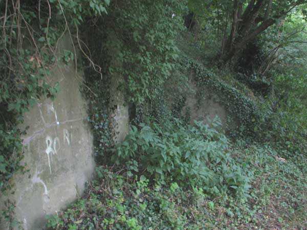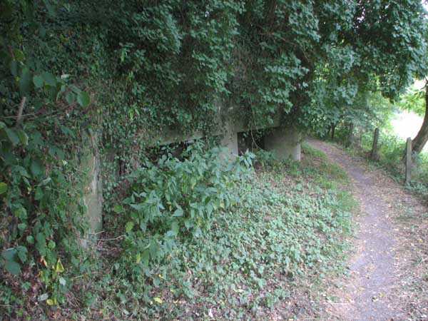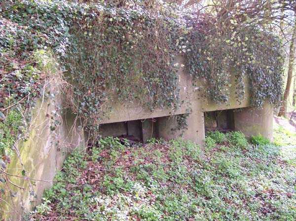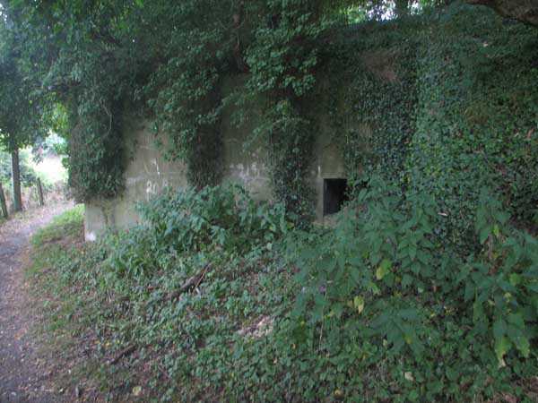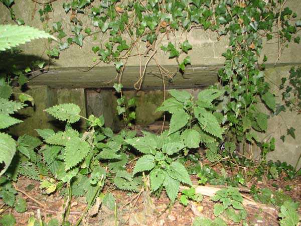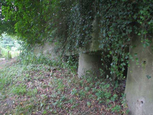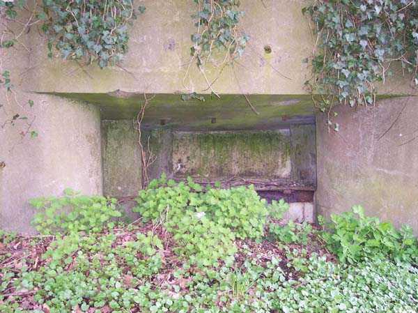 Fortified Position of Liège, second line of resistance, FPL2 Barchon-Meuse interval, shelter BM 2, 119 m/asl. Interval shelter BM 2 Hoignée is a typical shelter with two embrasures and no cupola located on Chemin de Hoignée between Cheratte Hauteurs and Housse in the municipality of Blégny. Structurally it seems to be in acceptable condition. Emergency exit, entrance and embrasures walled up except for a very small hole in the entrance. Hinges of the armored shutters for protecting the embrasures. We could not see the interior.