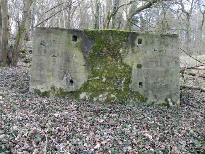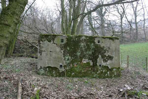 Belgische Befestigungen des Zweiten Weltkriegs, Festungsstellung Lüttich, erste Verteidigungslinie, vorgeschobene Stellung Beusdael, Unterstand C vom Typ PA Modell B mit Kellereingang, 208 M/ü. M., 3 Mann. Der Unterstand C der vorgeschobenen Stellung Beusdael beginnt unter der Feuchtigkeit des Standorts, an dem er errichtet wurde, zu leiden. Das Innere ist schwer zugänglich und der Eingang verfügt über eine besondere Einrichtung. Die Schießscharte ist vermauert.