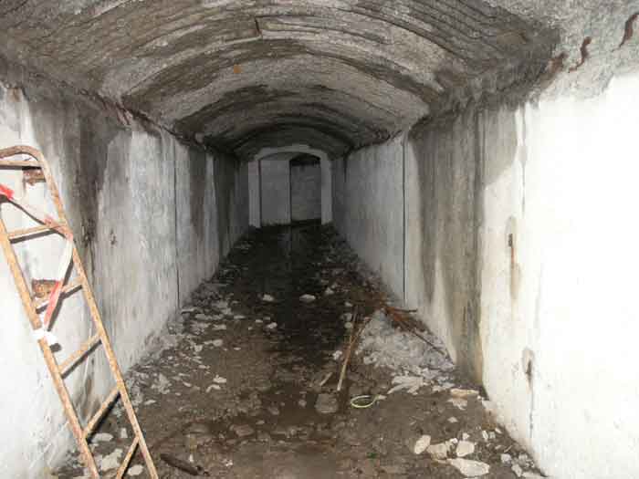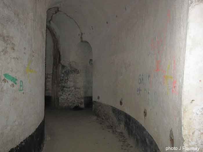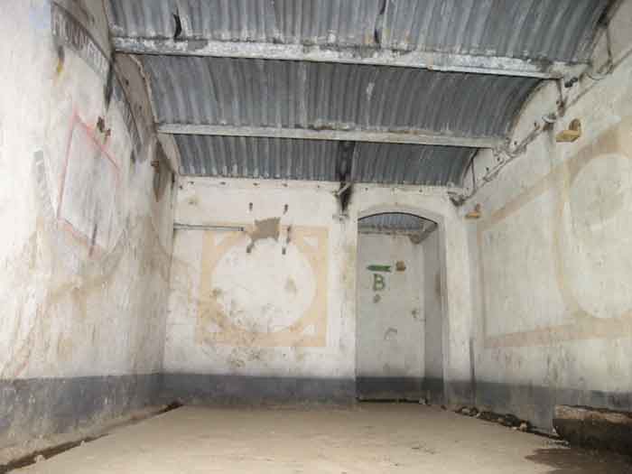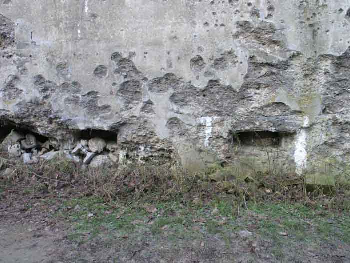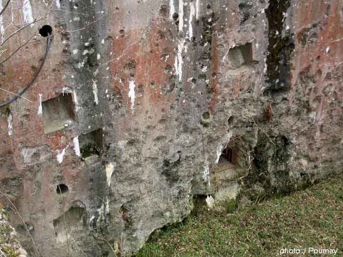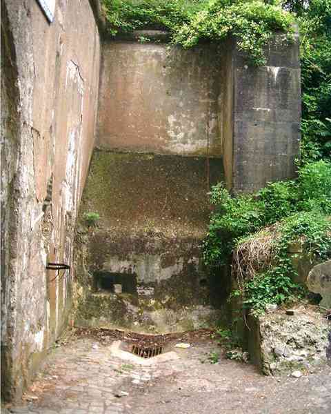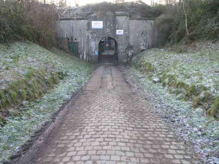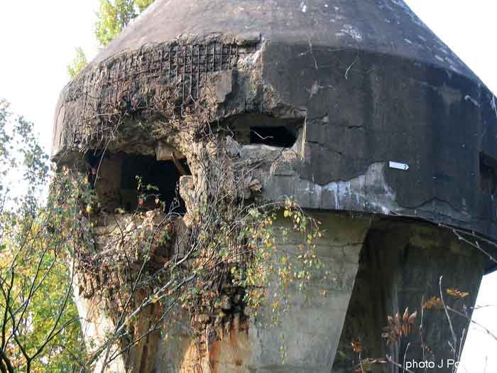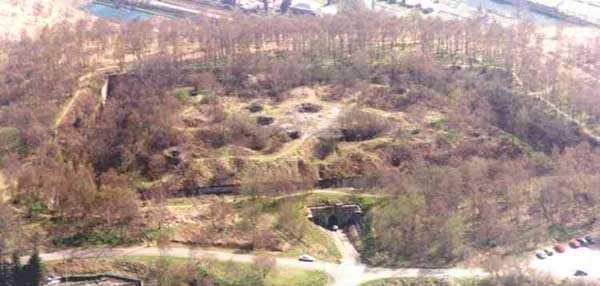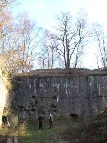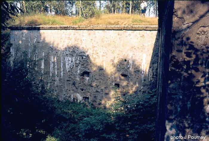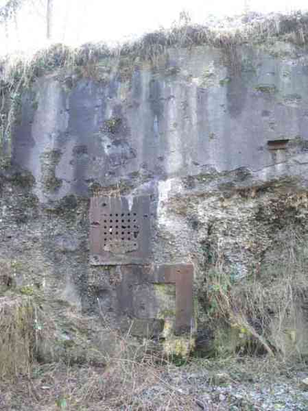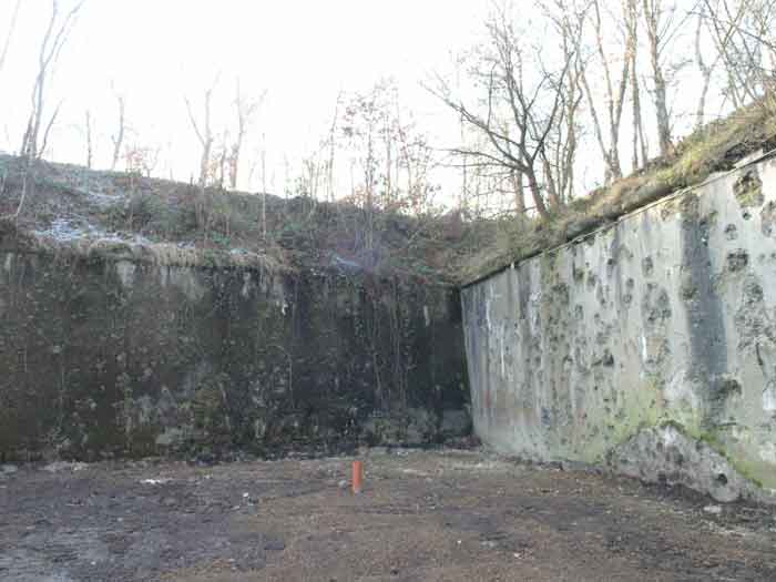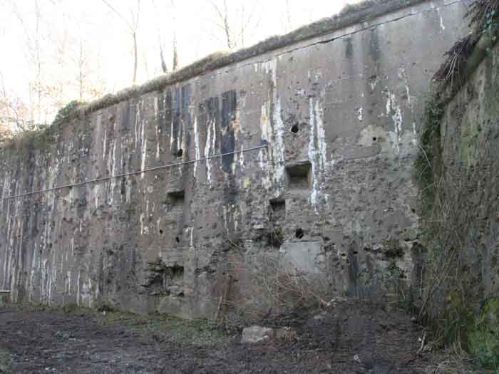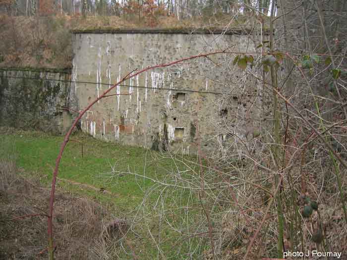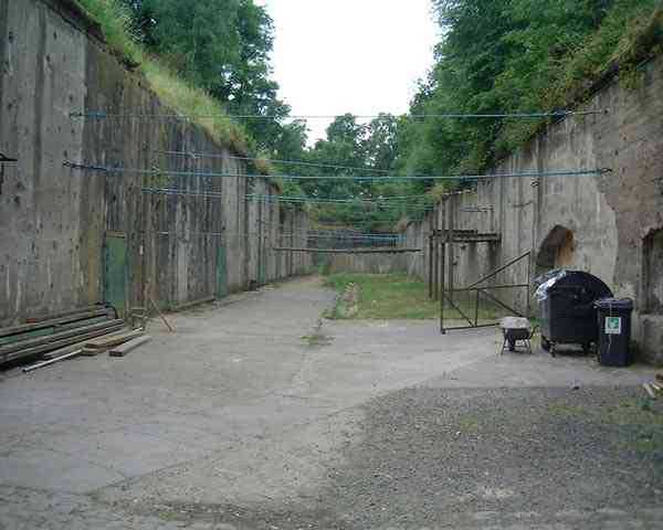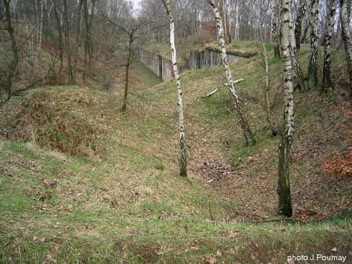 Fortified Position of Liège, second line of resistance, southeast of the city, 1888-1892, +/- 220 m/asl. 1 cupola 2 x 15 cm, 1 cupola 1 x 21 cm, 2 cupolas 1 x 12 cm, 3 turrets 1 x 5.7 cm, 1 armored searchlight, 8 cannons 5.7 cm for flanking. Small quadrangular fort lacking a curtain wall at the throat. Its counterscarp is singularly devoid of "shell traps" at salient IV. The German repairs of 1914-15 to the escarp and counterscarp walls are particularly well visible. Rearmed during the interwar period. Rare remains of the escarp grating on the head front survive at salient III. Some polychrome decorations are visible in rooms of the counterscarp, but a beautiful fresco, representing the Belgian lion with the country's motto, is located in the fort commander's room, at the air gallery level. The glacis house a vast bunker intended to shelter the Mi-ca teams, a bunker that should have been connected to the fort. On the reverse slope of the gorge front, a military cemetery testifies to the tragedy of August 13, 1914. A shell damaged the voussoirs of the 21 cm cupola. The flame of its explosion ignited the cartridges and the fire spread rapidly through the galleries. The garrison deplored 58 dead, mostly burned. The 71 graves of the cemetery also include 2 artillerymen from Fort Fléron, ten infantrymen fallen in the interval combats and… a civilian executed at Romsée. The fort today serves as an adventure sports ground. Sometimes locally called Fort de la Rochette. Visit possible with some adventurous contortions.