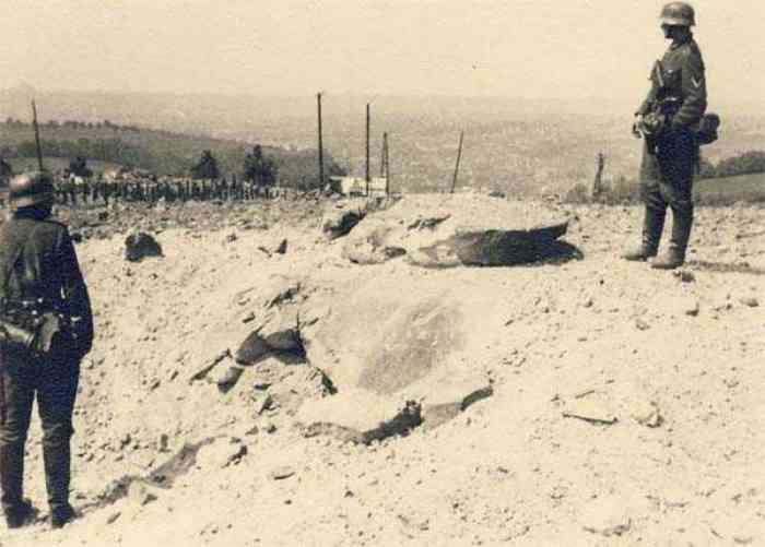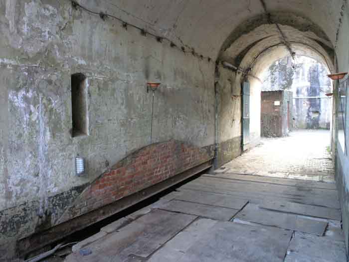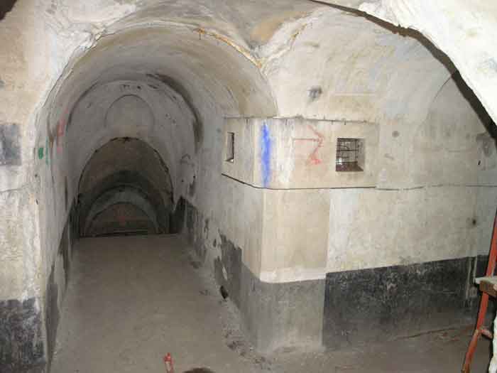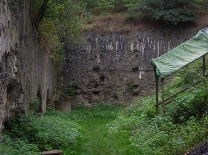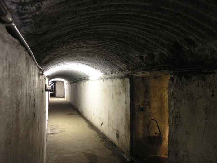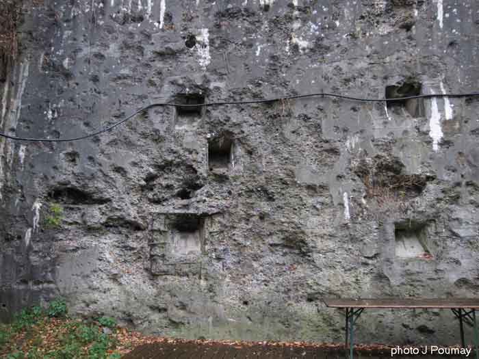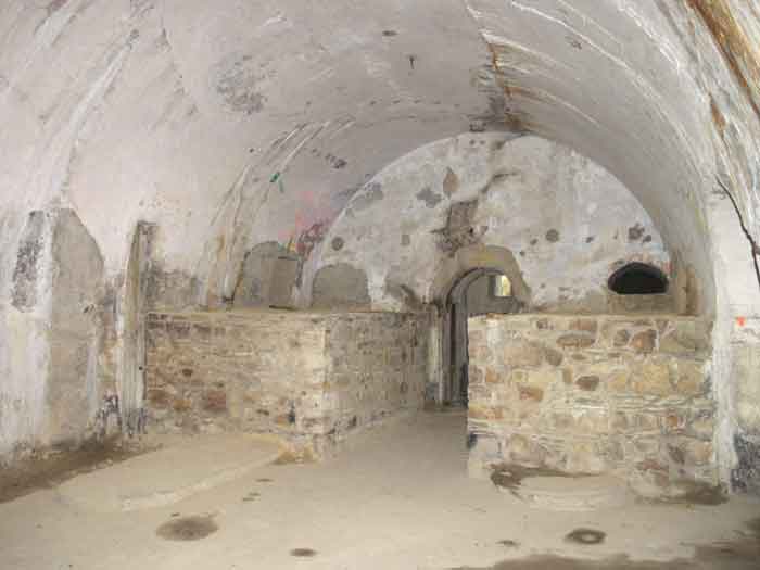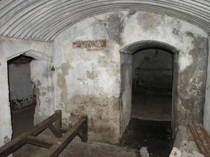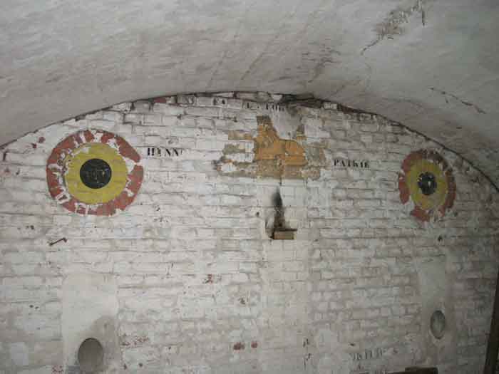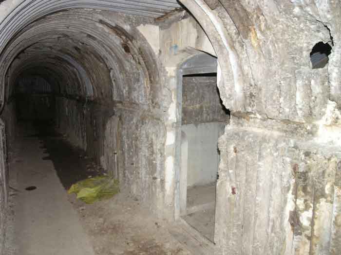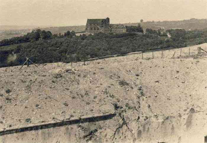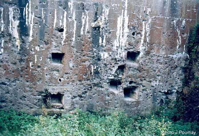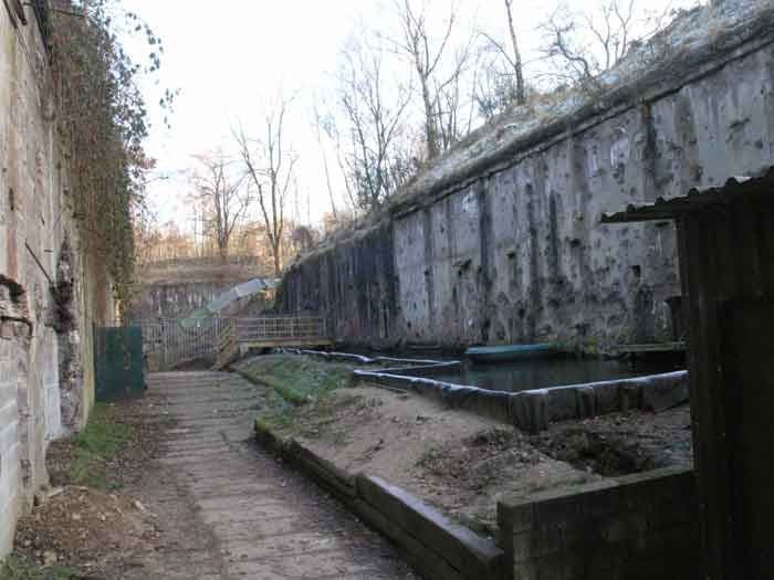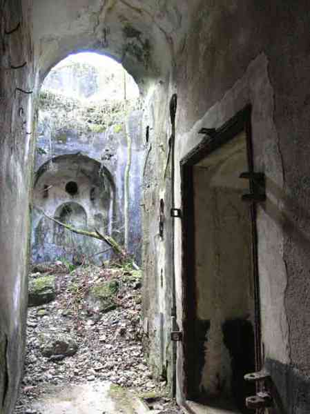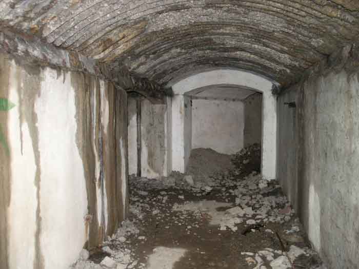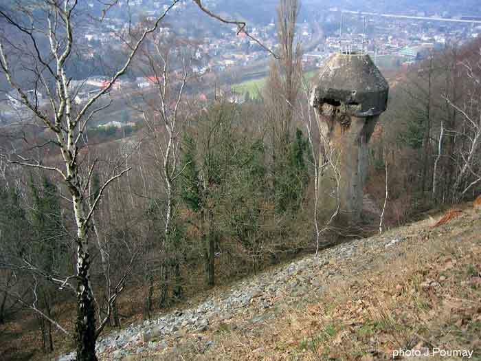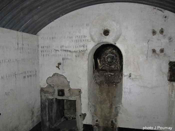 Fortified Position of Liège, second line of resistance, southeast of the city, 1888-1892, +/- 220 m/asl. 1 cupola 2 x 15 cm, 1 cupola 1 x 21 cm, 2 cupolas 1 x 12 cm, 3 turrets 1 x 5.7 cm, 1 armored searchlight, 8 cannons 5.7 cm for flanking. Small quadrangular fort lacking a curtain wall at the throat. Its counterscarp is singularly devoid of "shell traps" at salient IV. The German repairs of 1914-15 to the escarp and counterscarp walls are particularly well visible. Rearmed during the interwar period. Rare remains of the escarp grating on the head front survive at salient III. Some polychrome decorations are visible in rooms of the counterscarp, but a beautiful fresco, representing the Belgian lion with the country's motto, is located in the fort commander's room, at the air gallery level. The glacis house a vast bunker intended to shelter the Mi-ca teams, a bunker that should have been connected to the fort. On the reverse slope of the gorge front, a military cemetery testifies to the tragedy of August 13, 1914. A shell damaged the voussoirs of the 21 cm cupola. The flame of its explosion ignited the cartridges and the fire spread rapidly through the galleries. The garrison deplored 58 dead, mostly burned. The 71 graves of the cemetery also include 2 artillerymen from Fort Fléron, ten infantrymen fallen in the interval combats and… a civilian executed at Romsée. The fort today serves as an adventure sports ground. Sometimes locally called Fort de la Rochette. Visit possible with some adventurous contortions.