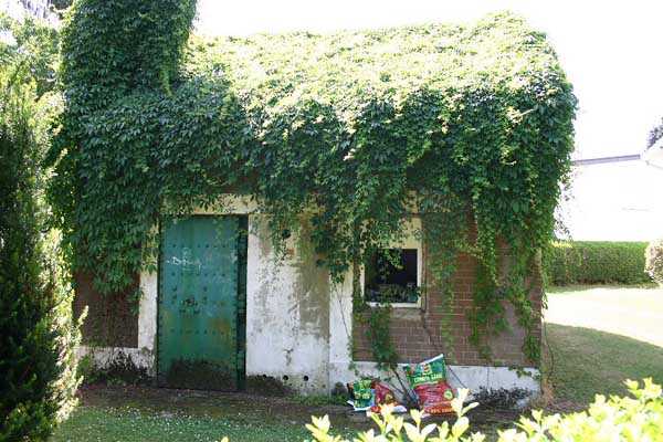 Telephone exchange CTF 11 Embourg, 189 m/asl, is located at the back of the garden of 4 Rue Pierre Dupont, along the Sentier Balance. The door is surrounded by ashlar and a small window is visible in a cement facing imitating red bricks. It appears to have a gable roof. Apart from the facade, it is completely covered with climbing ivy. It is clearly used as a garden shed and seems well maintained. On private property, access requires authorization.