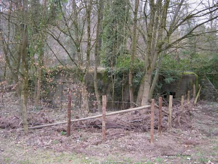 Belgische vestingen van de Tweede Wereldoorlog, Versterkte Stelling Luik, interval Comblain-Sougné van de eerste linie, schuilkelder CS11. Direct op de rechteroever van de Amblève, soms poëtisch gespeld als Emblève, uitstekende externe staat, de stenen camouflage is in onberispelijke staat. Goede binnenstaat, sporen van overstroming. Chardôme-steun voor sleeplaffet van het Maxim-machinegeweer. Plankbevestigingen en diensthaken nog steeds aanwezig. Bevestigingsplaat voor de patroontrechter is nog op zijn plaats. Haak voor de lamp compleet. Een granaatwerpgoot die de ingang dekt. De andere, nog steeds voorzien van zijn sluitklep, dekt de tegenoverliggende zijde. Aanwezigheid van een DN-grenspaal die het militaire terrein afbakent. Privé-eigendom, het terrein behoort toe aan de kasteelvrouwe.