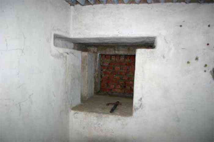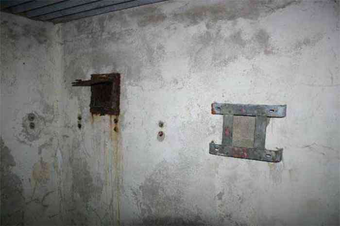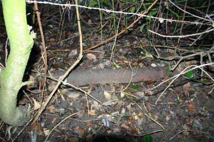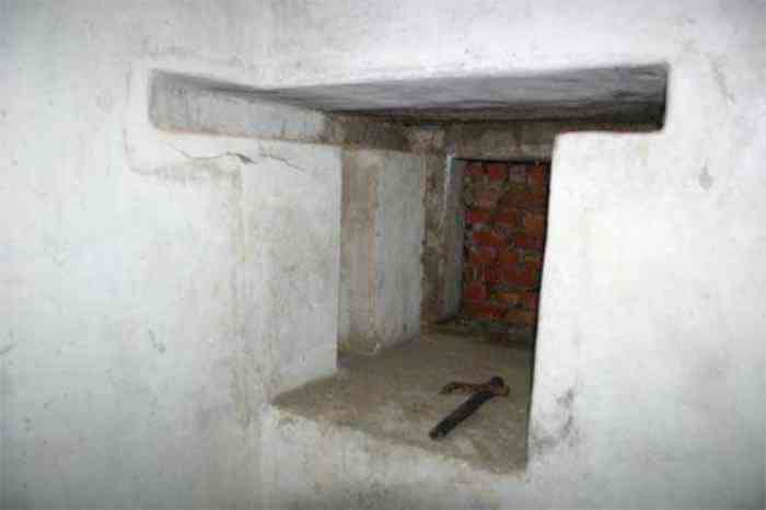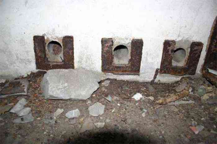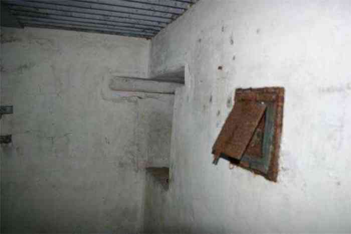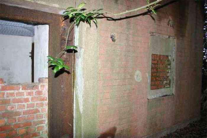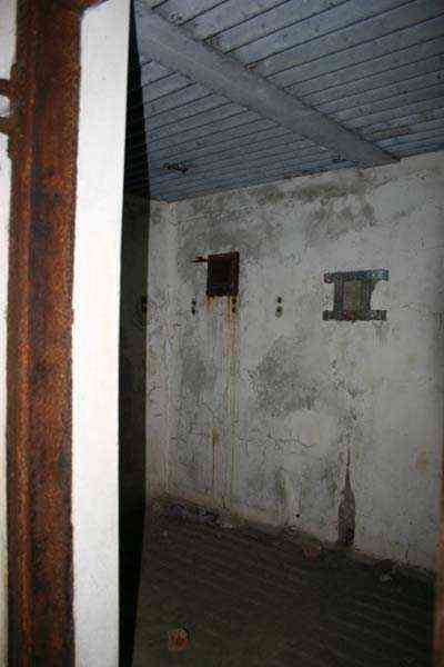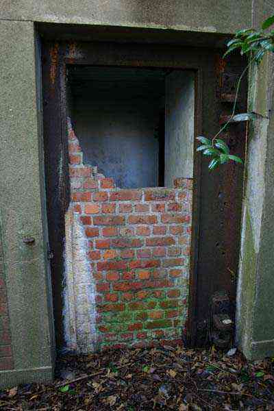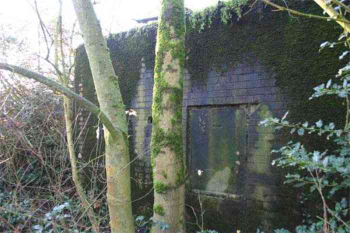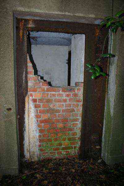 Telephone exchange Beune CTF 9 of Beyne-Heusay, 237 m/asl, is located at 49 Rue Neufcour southwest of Beyne-Heusay, facing the RAVeL (Autonomous Network of Slow Lanes) formerly line 38 of the defunct Belgian National Railway Company (SNCB), and backing onto the Neufcour castle, in a clump of trees that have grown considerably. It presents itself as a small construction of 3 x 4 m with an armored door of which only the frame and hinges remain, two-thirds walled up; a small window of 30 x 30 cm also walled up; a large false window without its folding shutters. On the ceiling, in corrugated iron as always, the attachment for the Coleman lamp hook remains, but without the hook. In the corner opposite the door, a concrete shelf of 50 x 20 cm at 70 cm from the floor, under the small window and right next to a grenade launcher chute fitted with its closing flap. On the opposite wall, another grenade launcher chute also fitted with its closing flap. Three tubes of 8 cm diameter spaced 30 cm apart are aligned in the lower part of the wall to the right of the entrance door. The interior is empty and clean. Outside, the concrete posts delimiting the military area are still present with their wire fence. The faces of the exchange are finished with cement imitating bricks but the flat roof does not overhang. The whole is relatively in good condition.