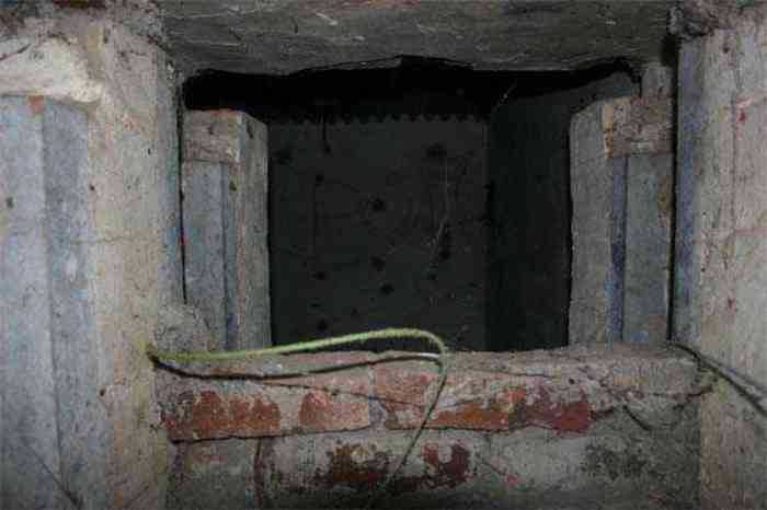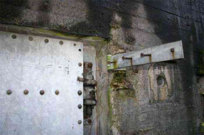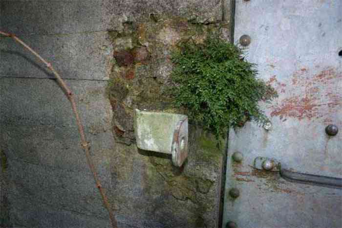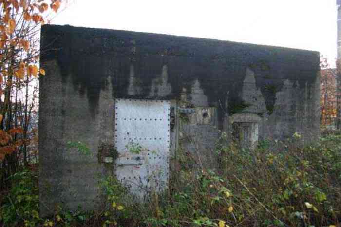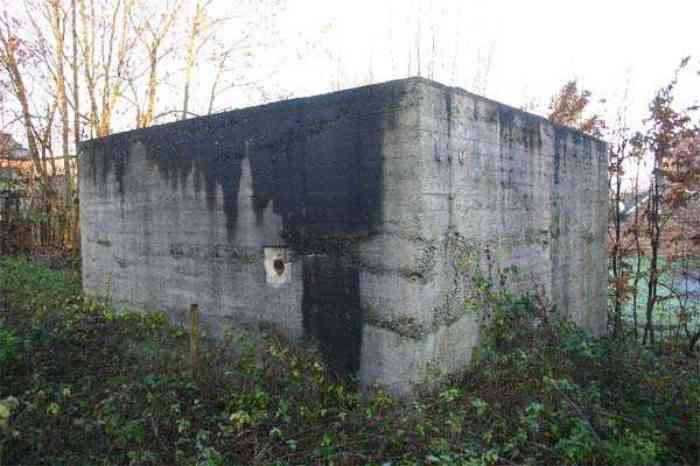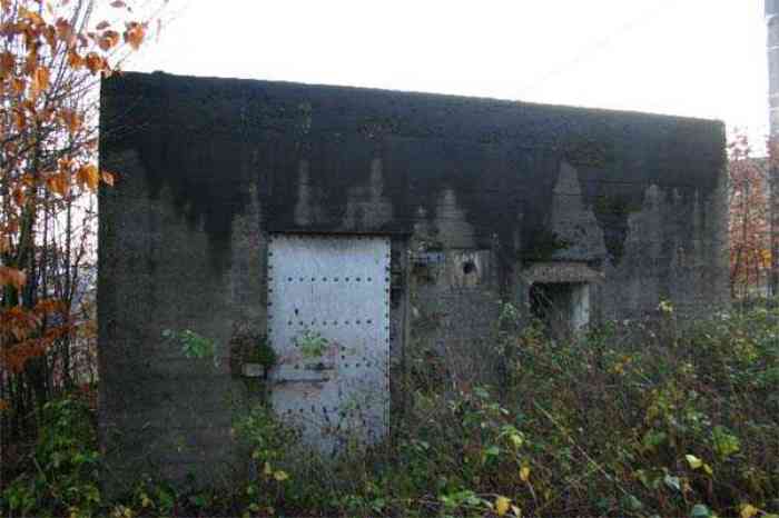 Telephone exchange CTF 21 Saint-André, 162 m/asl, is located at 5 Heusière in Saint-André, municipality of Mortroux, entity of Dalhem following the merger of municipalities. It is a classic, I was about to say typical, telephone exchange with a flat roof, an entrance protected by an armored door and an emergency exit in a high position in case the door were blocked by rubble with technicians trapped inside. The particularity lies in the fact that the armored door is still in place and partly functional and locked with its original lock. The emergency exit is open, which does not, however, facilitate access to the interior because two rows of bricks have been walled up there. During our visit in 2019, the building was completely overrun by abundant and persistent vegetation.