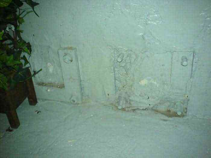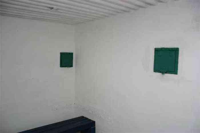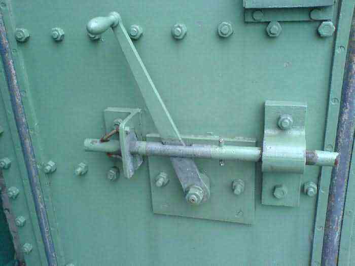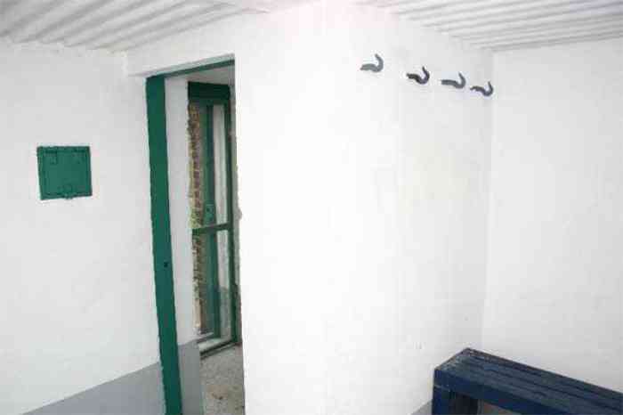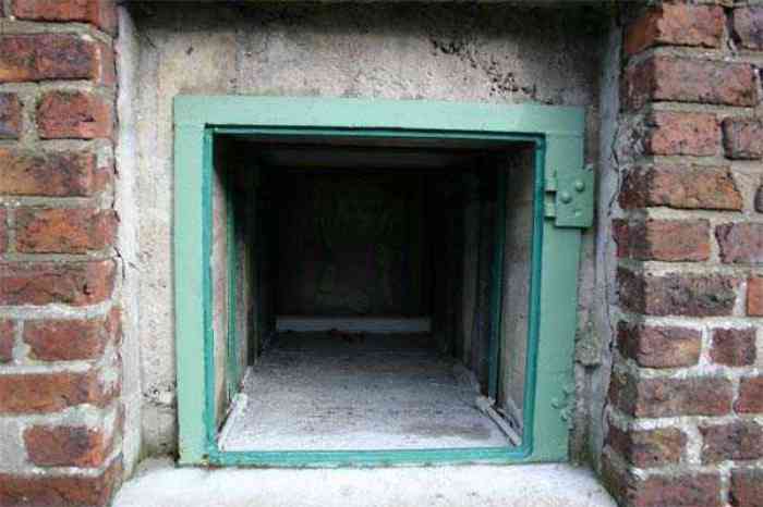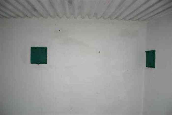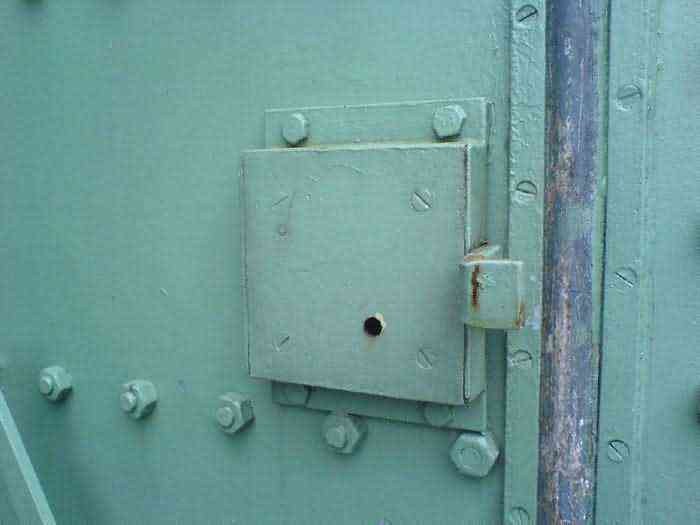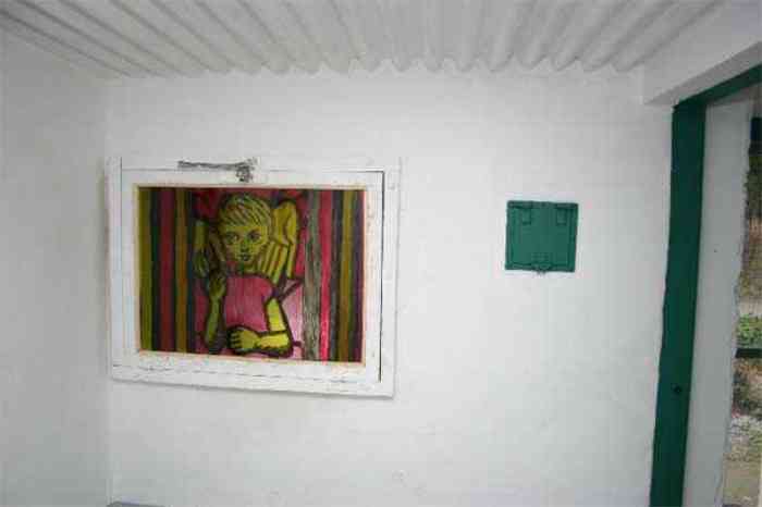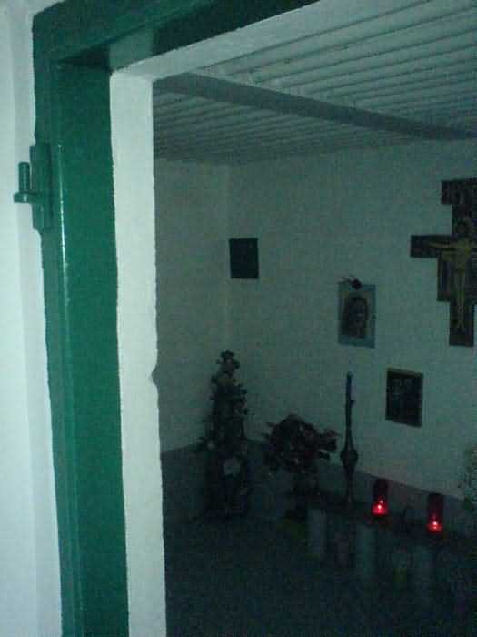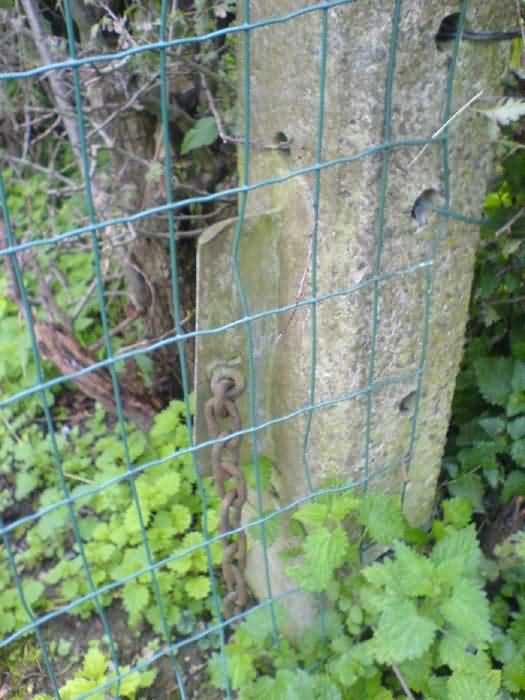 Telephone exchange CTF 13 Barchon, 177 m/asl, is located at 1 Rue del Potale, 580 m east-southeast of salient 3 of the fort of Barchon. It is a typical construction clad in local brick with a gable roof, representing a small agricultural annex topped with a pseudo hayloft. Perfectly maintained, it still has its armored door and is currently arranged as a chapel. The three cable outlet tubes of 8 cm diameter spaced 30 cm apart are at ground level with their closing flaps. The small firing window for a light weapon, next to the grenade launcher chute with its closing flap, has received a stained glass window depicting a stylized, very colorful angel. On the ceiling remains the attachment for the Coleman lamp hook. The left side wall shows four L2 hooks and an emergency exit in a high position lacking its closure beams. A few boundary posts of the military area remain.