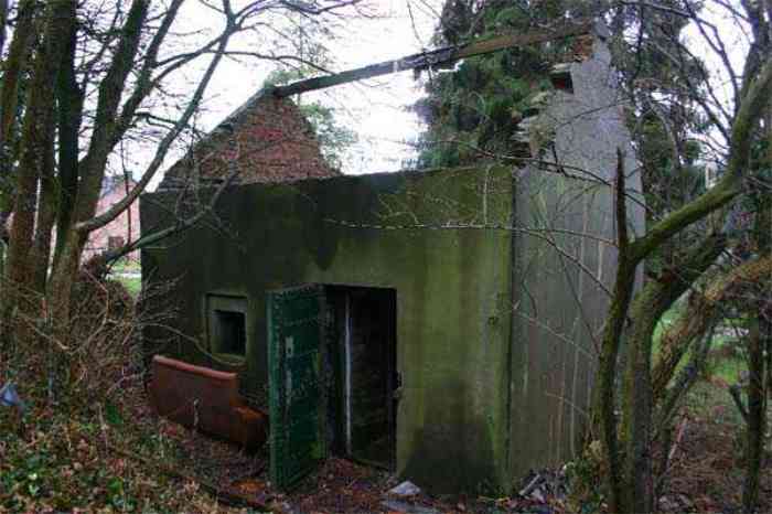 Die Telefonzentrale CTF 15 Blindhef, 231 M/ü. M., befindet sich in der Rue de la China 68 in Sprimont. Es handelt sich um einen typischen Bau mit Satteldach aus regionalen Ziegeln und Außenwandverkleidung aus glattem Zement, der um seinen Notausgang herum gut sichtbar ist. Dieser Notausgang ist in einer hohen Position angebracht, falls die nach außen öffnende Tür durch Schutt blockiert sein sollte. 2008 hatte er sein Dach verloren, und nur noch der Firstbalken war erhalten. 2011 besaß er noch seine Panzertür und Kabelreste, die von außen kamen, sowie seinen DN2-Katasterstein (Landesverteidigung) und den versetzten DN1-Katasterstein. Als verschollen galt, fotografierten wir ihn im Frühjahr 2026. Der Firstbalken war verschwunden, ebenso die dreieckigen Giebel, die ihn trugen, was ihn in eine Flachdach-CTF verwandelte. Er befindet sich nun auf einem Privatgrundstück, und der Zugang ist daher genehmigungspflichtig.