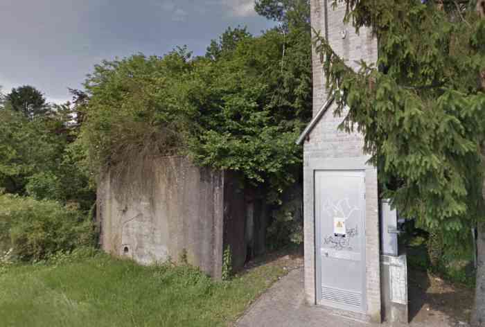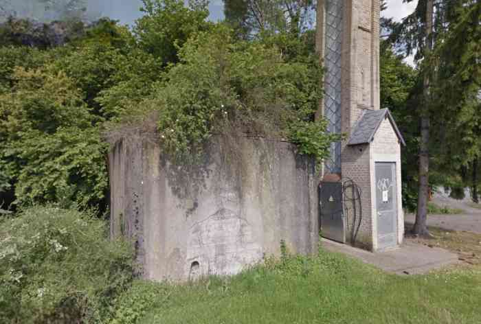 Telephone exchange CTF 20 Hotchamp, 225 m/asl, is located at 29 Rue de Hotchamps in the municipality of Sprimont. It is a typical telephone exchange with a flat roof covered with earth. Various pipes leave the structure through the ground. It has the particularity of having a louvered shutter closing its emergency exit. It immediately adjoins a turreted high-voltage cabinet from the same construction period. Its earth covering has encouraged the establishment of abundant vegetation. It is relatively in good condition and relatively clean.