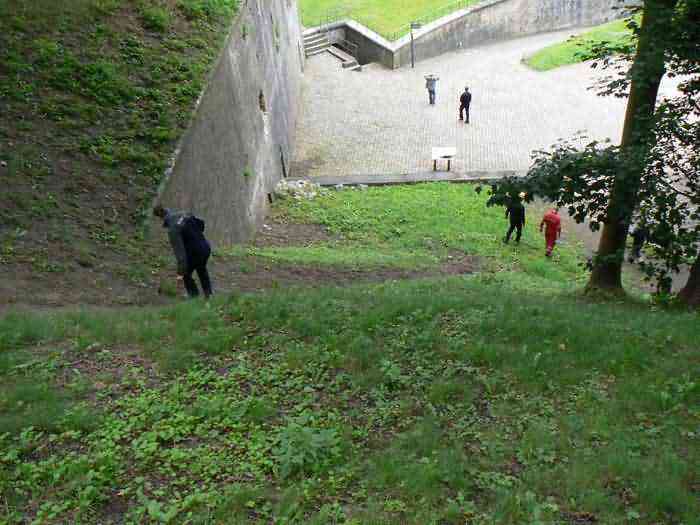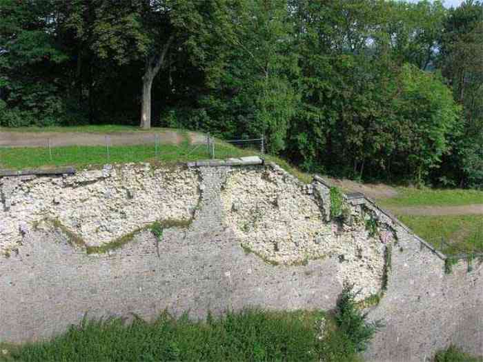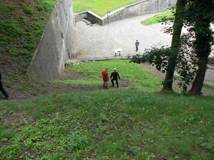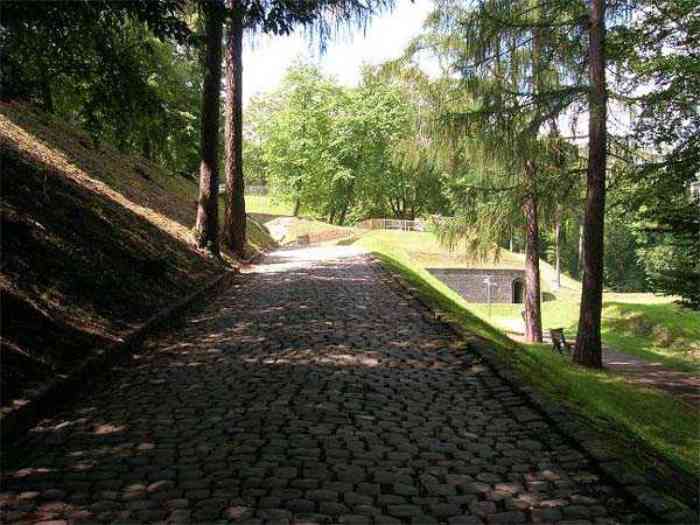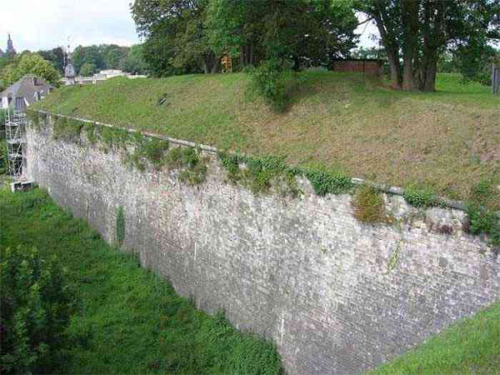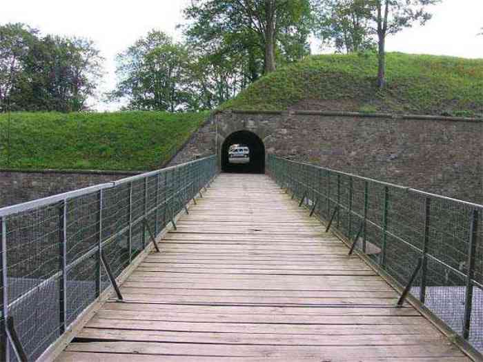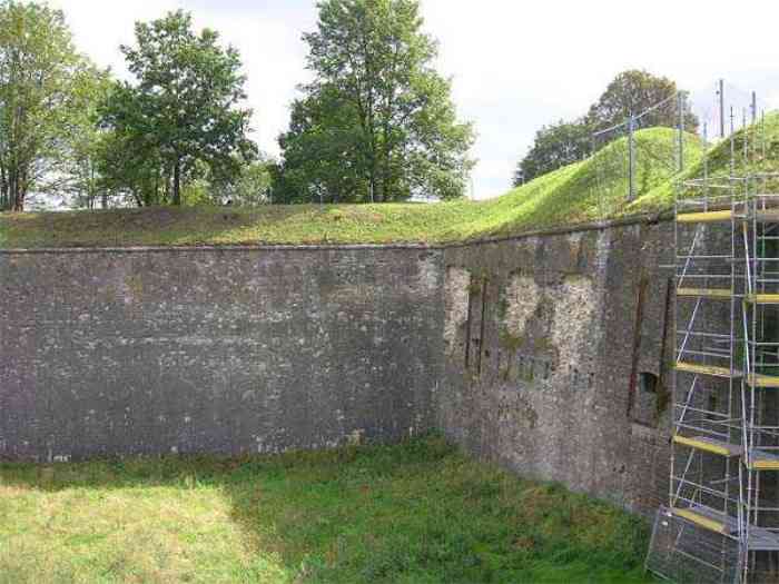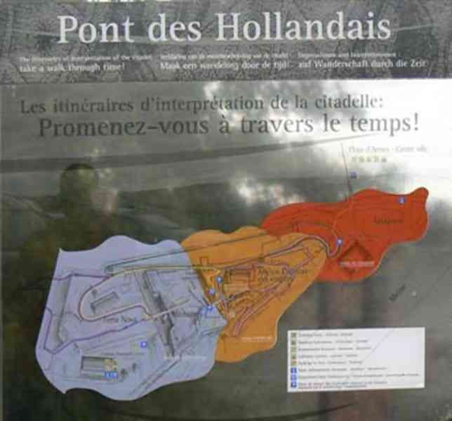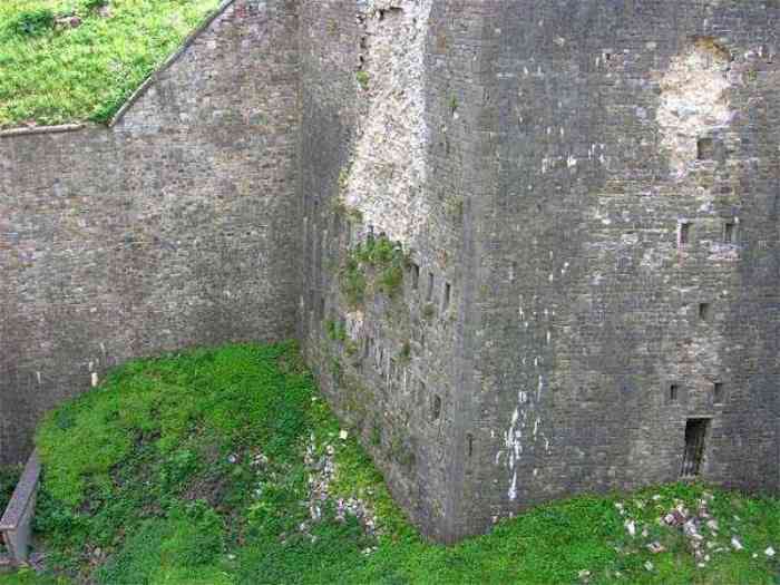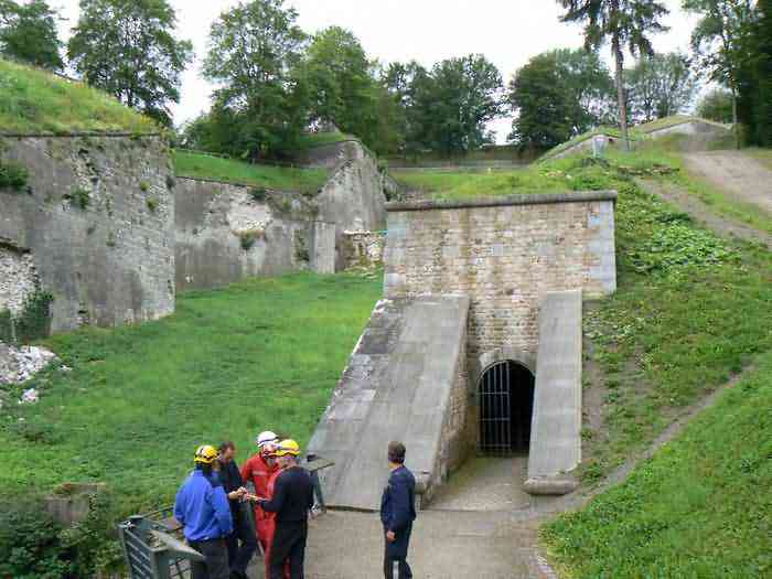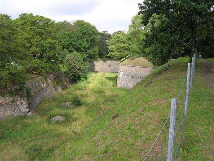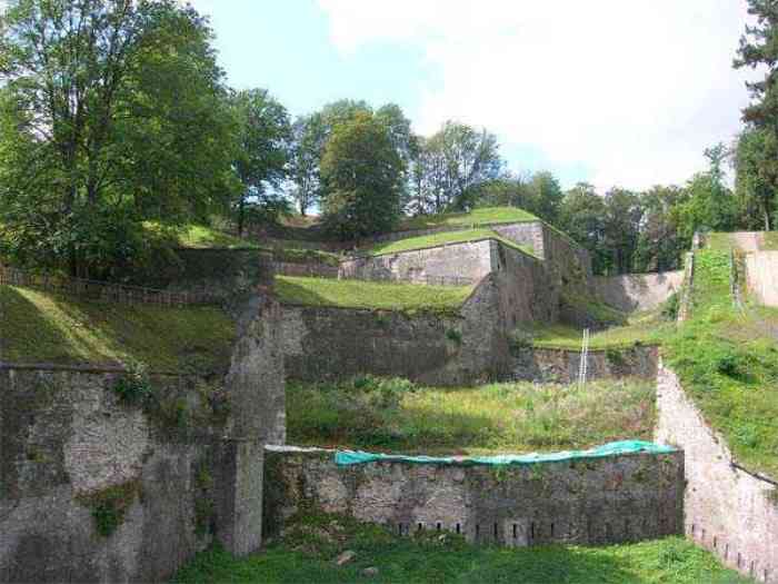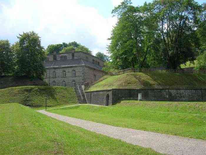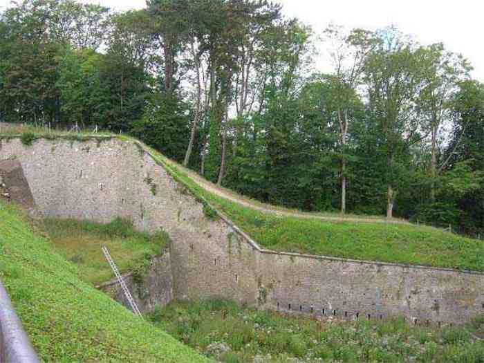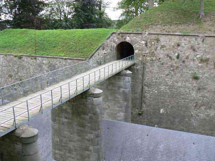 Overlooking the city of Namur, 123 m/asl, the provincial capital located at the confluence of the Meuse and the Sambre, the citadel is composed of three adjoining parts from different eras. There is the old count's castle which evolved from 937 to the 15th century, to which was added, beyond a ditch, the Médiane, a work with two bastions whose curtain wall of the head front has no detached organ and was built from 1542 onwards. In front of Médiane, the Dutch built, from 1631 to 1675, a vast bastioned fort which was named, after 1691, Terra Nova. This fort was separated from Médiane by a bastioned tenaille. Vauban made a few minor improvements, but focused mainly on the city's enceinte. During the 18th century, several detached works were developed in front of Terra Nova, such as Fort d'Orange (or Fort Guillaume, or also Fort Coehoorn), the forts Camus, Schwartzenberg, du Saint-Esprit, du Diable, the lunette Kykuyt, etc. King Leopold II pronounced the decommissioning of the citadel as a military place in July 1891. Note that in 1939, the command post of the Fortified Position of Namur established itself there in an old network of galleries that was carefully gunited. A device for slight overpressure was planned. Although outside the scope of this index, we allow ourselves to emphasize this truly singular command post which will astonish even the most seasoned of our readers.