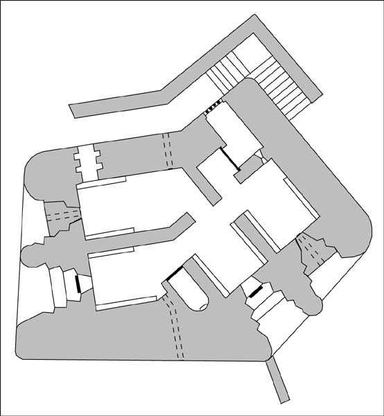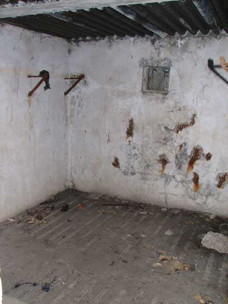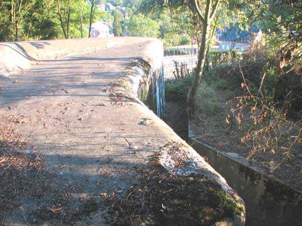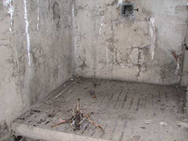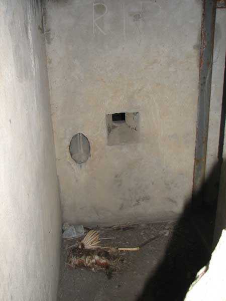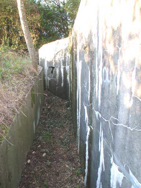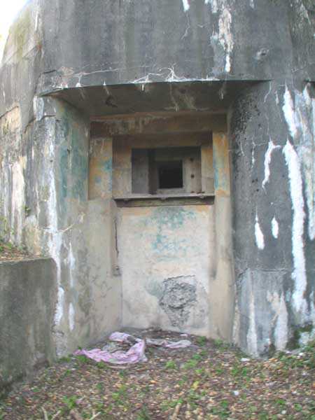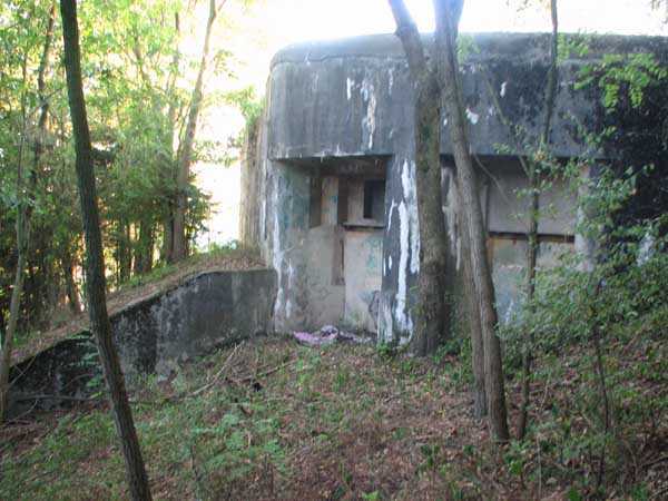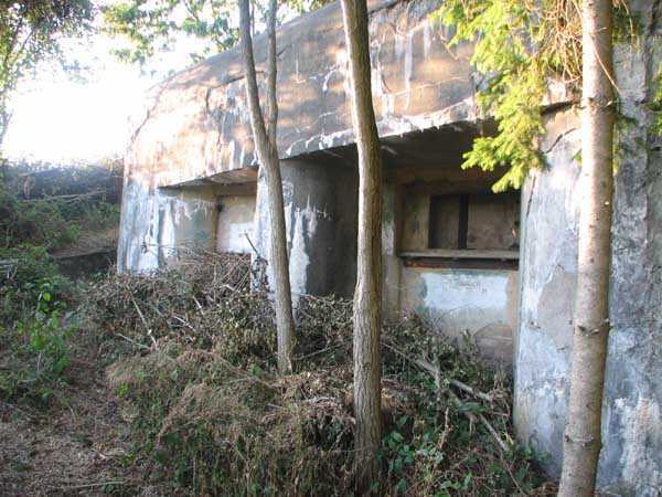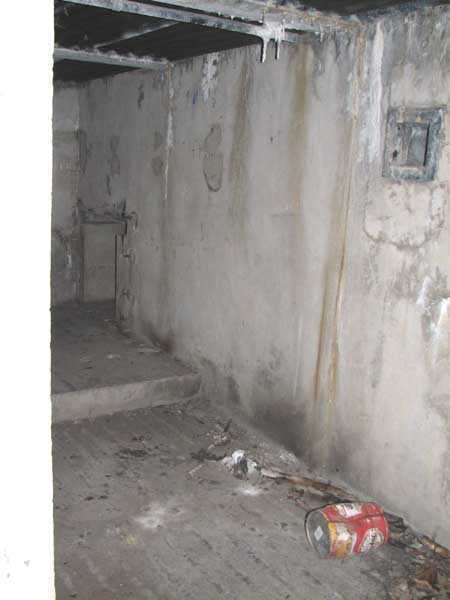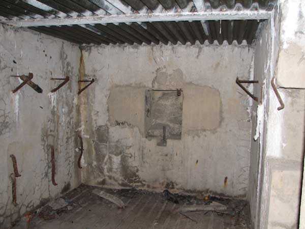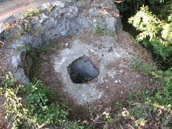 Fortified Position of Liège, second line of resistance, Chaudfontaine-Fléron interval, shelter CF4, 200 m/asl, located in Bouny on a 21 m high hillock from which it dominates all the surroundings, accessible by a path that climbs up there from the northern end of Rue Fond du Loup. It is a superb shelter with an original design, converted for 2 x 2 machine guns, a light machine gun for entrance defense, an observation cupola, torn off by scrap dealers who would have done better to do it elsewhere, and two grenade launcher chutes. The conversion modified two of the machine gun embrasures into additional grenade launcher chutes. Still present: the rungs in the cupola shaft, the consoles for shelves, some of which are bent, the L3 hooks for hanging individual weapons, the Chardôme mount supports as well as the axle, the frames of the closing flaps of the grenade launcher chutes, the door frames and hinges, the fixings for the hinges of the armored embrasure shutters and a significant part of the forced ventilation. During my visit in July 2006, the shelter served as a playground for the neighborhood children who accompanied me on the tour. The exterior and interior were clean and in good condition.