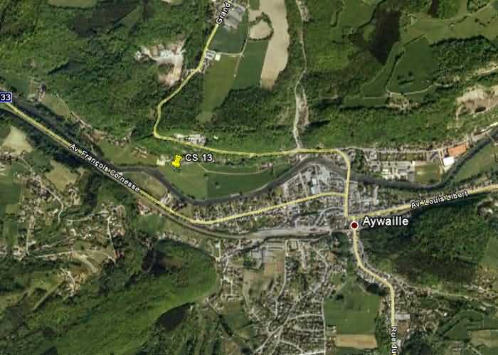 Belgické opevnění z druhé světové války, Opevněná pozice Lutych, interval Comblain-Sougné první linie, bunkr CS13. Bunkr se střílnou pro kulomet Maxim na saních lafetě, celé namontované na zařízení Chardôme. Umístěný 975 metrů východně od centra obce Aywaille na louce mezi ulicí Rue de l'Emblève a pravým břehem řeky, je ukryt v hájku stromů. Vstup je trochu obtížný, ale celek je v dobrém stavu jak zvenčí, tak uvnitř. Stále se zde nachází podpěra a osa lafety Chardôme, svislá ryska PR pro nastavení zbraně, konzoly polic a servisní háky, upevňovací deska pro nábojový násypník, háky pro upevnění lamp, granátový výmetný žlab, který kryje vchod, s jeho uzavíracím dvířkem, plotové sloupky a hraniční kámen DN vymezující vojenský pozemek.