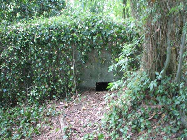Fortified Position of Liège, second line of resistance, Chaudfontaine-Fléron interval, shelter CF8, 264 m/asl, located on the ridge formed by Rue Longue Hayoulle, on the east side at the roadside, practically at the convergence of Rue des Pâquerettes and Parc de Hayoulles, it would offer a panoramic view over all of southern Fléron as far as Magnée, but it is a classic, unmodified FPL2 type shelter with two embrasures for a machine gun and without an observation cupola. It currently serves as a playground for the neighborhood children.