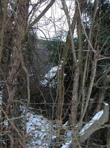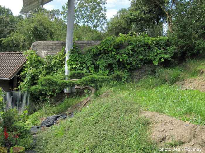 Belgian fortifications of the Second World War, Fortified Position of Liège, Comblain-Sougné interval of the first line, shelter CS W with an embrasure for a Maxim machine gun on a sleigh mount and Chardôme device. On private property and partially covered by possibly original vegetation, it is not very visible and appears to be in good condition. It retains some of its original fence posts.