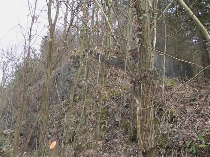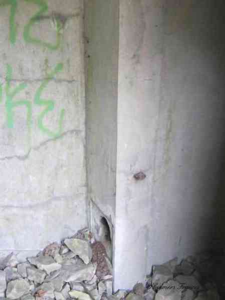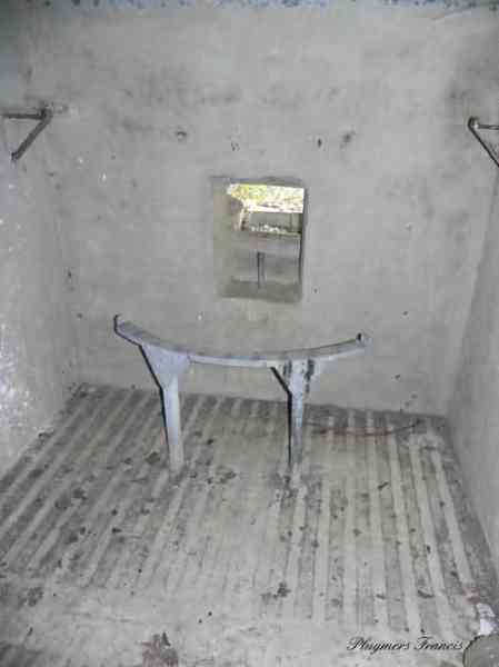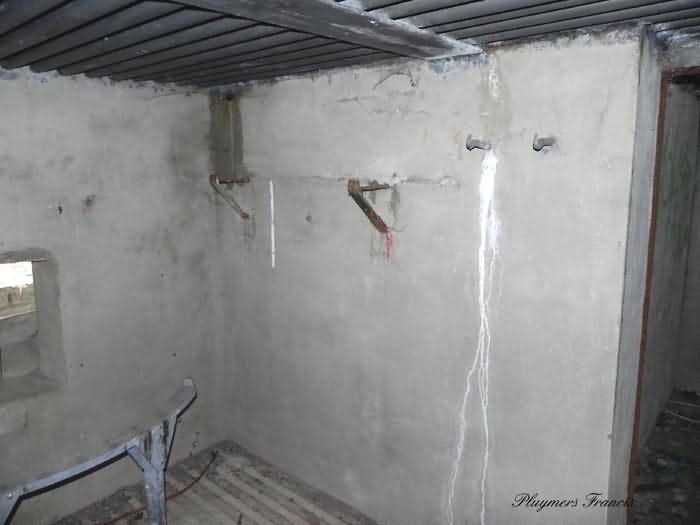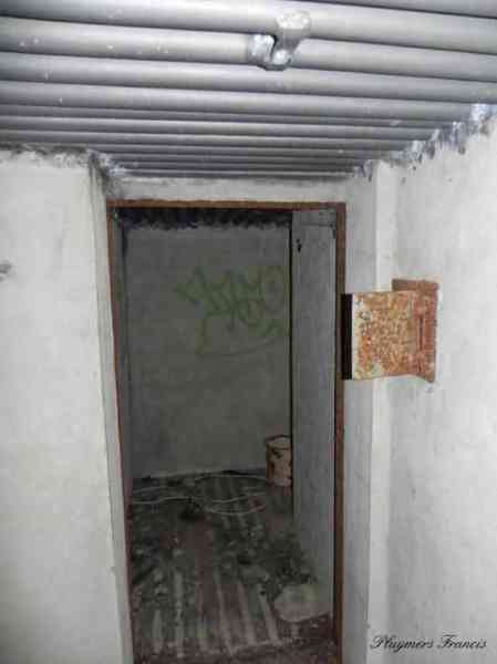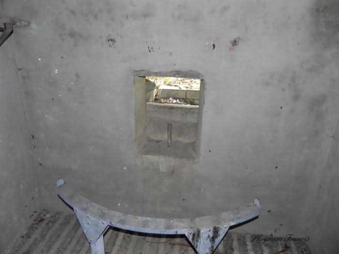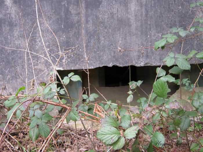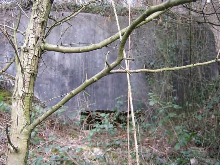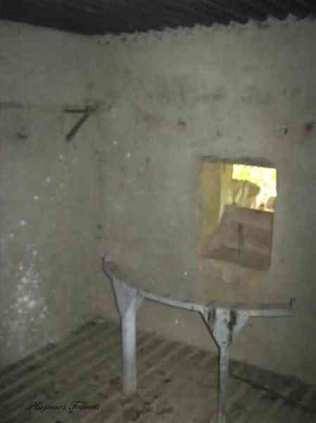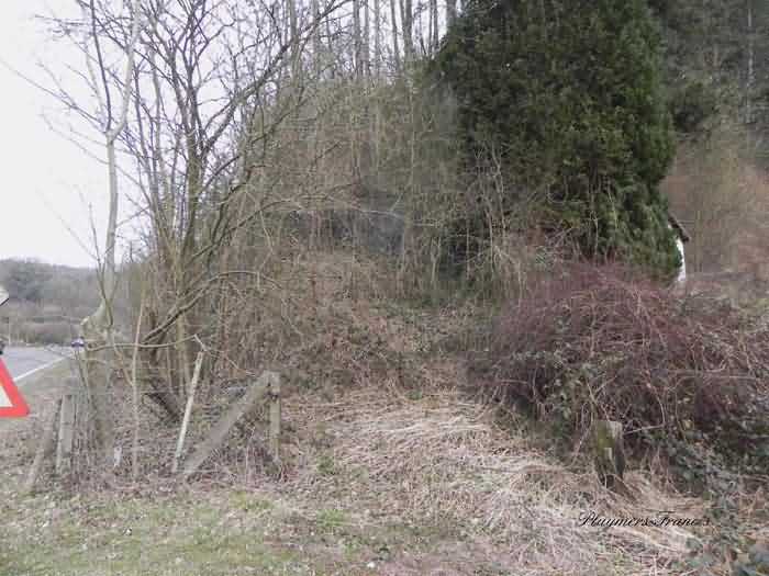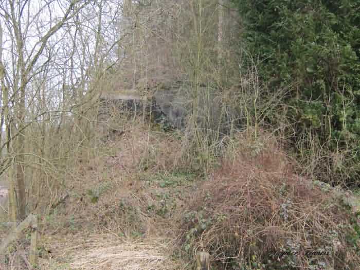 Belgian fortifications of the Second World War, Fortified Position of Liège, Comblain-Sougné interval of the first line, shelter CS Y with an embrasure for a Maxim machine gun on a sleigh mount and Chardôme device. On the edge of Sécheval, just before arriving under the viaduct, it is heavily overgrown with vegetation but still relatively in good condition and clean. Its embrasure is not walled up and the entrance is through a chicane corridor defended by a grenade-launching chute. It retains the support of the Chardôme mount and its axle, the PR reference mark for weapon adjustment, the shelf consoles and service hooks, the mounting plate for the cartridge hopper, the hooks for fixing the lighting and the grenade-launching chute still has its closing flap.