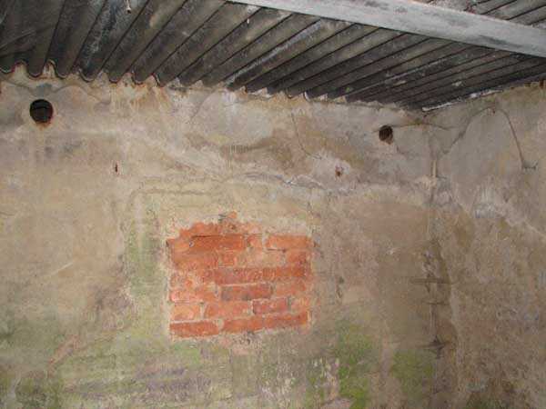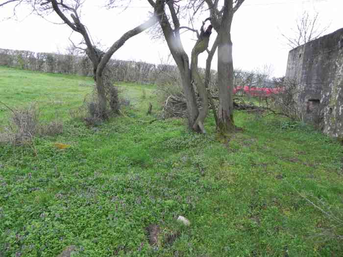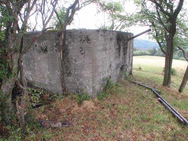 Belgian fortifications of the Second World War, fortified position of Liège, first line of defense, advanced position of Dolhain, M shelter of type PA model A, 293 m/asl, 3 men. When leaving Limbourg via Hors-les-Portes, turn right, chemin du Halloux, just in front of the Sainte-Anne chapel on the Trixhes aux Rames. The shelter is located to the right of the path, 10 meters behind the hedge, accessible via a stile, just before the farm. The embrasure is walled up with simple brick on each side, the hinges of the embrasure are present but the mount support is missing as well as the metal door whose hinges have been torn off. External condition acceptable, interior clean and in good condition.