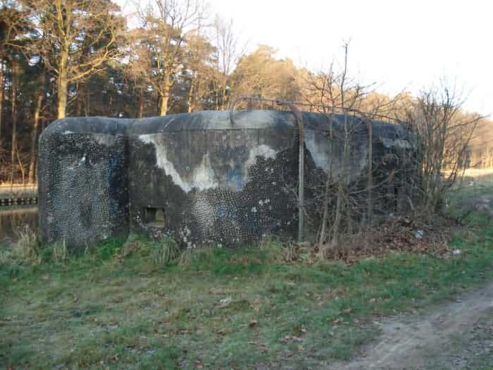 Infantry shelter with two opposing embrasures flanking the Dessel - Schoten canal upstream and downstream, with two Maxim machine guns on Chardôme mount.