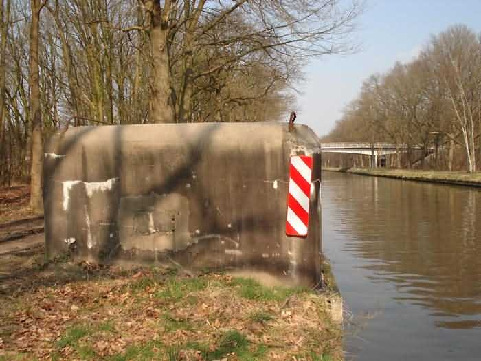 Infanterieunterstand mit zwei gegenüberliegenden Scharten, die den Kanal Dessel - Schoten flussaufwärts und flussabwärts flankieren, mit zwei Maxim-Maschinengewehren auf Chardôme-Lafette. Eine Scharte zur Eingangsverteidigung für ein Maschinengewehr, ein Notausgang, verschlossen durch 2 Reihen verschwundener Träger, und eine halbe Ziegelsteinwand, verborgen unter Zement. Zwei Wurftrichter für Handgranaten mit Auffangkorb. Regale und Wandhaken vorhanden, zahlreiche Graffiti.