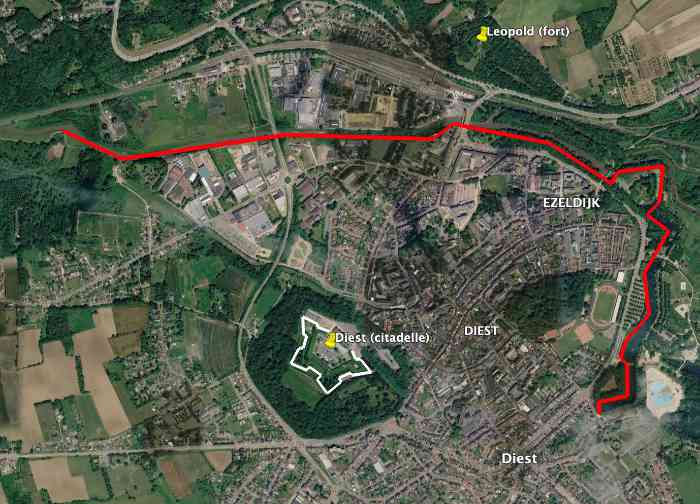 Provinz Flämisch-Brabant. Der Platz umfasst eine Zitadelle und eine Umwallung, von der drei Tore erhalten sind: Schaffense poort, Molenpoort und Demerse poort oder Sluispoort; die anderen, Antwerpse poort, Waterpoort, Leuvense poort, sind infolge der Verstädterung der Stadt verschwunden. Ein abgelegenes Fort im Norden, das Fort Luitpold. Die Pläne des Platzes wurden bereits 1835 von den Majoren Charles Laurillard und Jean Edouard Jozef De Lannoy entworfen. Die Umwallung und ihre Tore wurden 1837 fertiggestellt. Zwei große überschwemmungsfähige Gebiete sollten zum Schutz der Stadt beitragen.