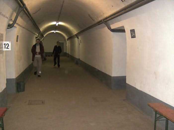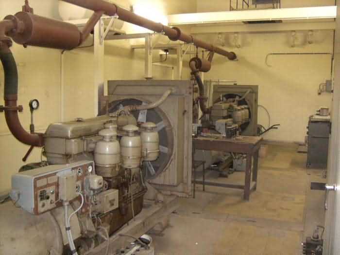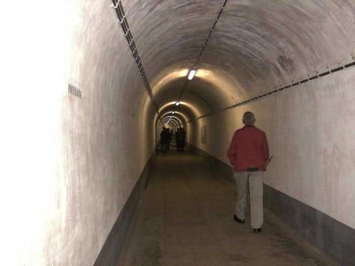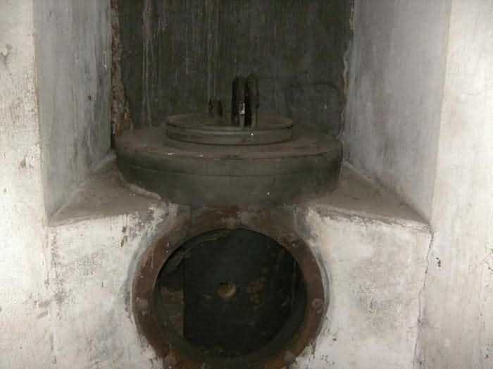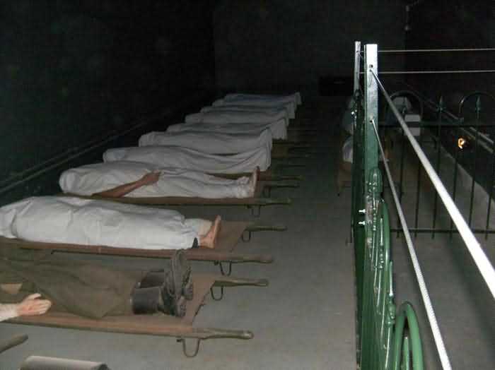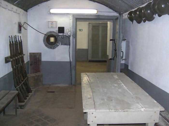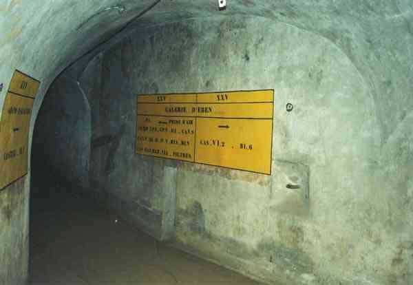 Belgian fortifications of the Second World War, first line of the fortified position of Liège, fortified position of Liège, fort of Eben-Emael, subsurface. Excavated in marl and tuffeau, the subsurface of Fort Eben-Emael has the great advantage of being relatively dry compared to most other Belgian forts. The excavation of the underground galleries and rooms did not require heavy equipment or cumbersome reinforcement structures. Two large truck galleries allowed the evacuation of debris by barge on the Albert Canal without arousing too much enemy attention to the importance of the ongoing works. The fort still has all its heavy weapons, some light weapons, the pumping systems, the ventilation accessories, the transport carts for water and ammunition, the lifts and the elevator. A large part of the underground barracks rooms has been restored. The hospital and its outbuildings were reconstructed based on period photographs. The kitchen was converted into a cafeteria and the adjoining rooms into a museum. The museum contains many very interesting pieces, some very rare and of great value.