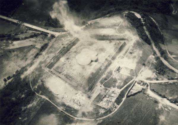 Fortified Position of Liège, second line of resistance, Fort Embourg, 222 m/asl. Embourg is a locality situated not far from the center of the city of Liège and near Chênée and Chaudfontaine. The region is privileged by two important watercourses: the Ourthe and the Vesdre. Embourg is a fairly elevated place which allows views over beautiful valleys that arouse the admiration of tourists and therefore possessed an undeniable strategic advantage. In the construction program of a fort belt, Embourg had been selected as a place that could meet the following needs: defend the Ourthe valley (road from Tilff to Liège and railway from Jemelle to Liège), protect the road from Liège to Spa and ensure the defense of the Vesdre valley (road and railway line from Verviers to Liège). These operations were to be carried out in liaison with the forts of Boncelles, Chaudfontaine and Fléron. Although variants were made to the various configurations of some of the twelve forts of the FPL of 1914, that of the old Fort Embourg was retained. The higher authorities decided on the restoration and reoccupation of the work that would serve in 1940. At that time, the Fortress Regiment of Liège comprised twelve forts including four large ones: Eben-Emael, Neufchâteau, Battice and Tancrémont-Pepinster. Eight small ones were responsible for supporting them: Pontisse, Flémalle, Evegnée, Barchon, Fléron, Boncelles, Chaudfontaine and Embourg. At Embourg, from 1930 the search began for places from which the observation of possible fire from the fort would be best assured. Among others the "Trihay" was retained because, besides having a very good view over the Vesdre valley, it allowed, if necessary, the observation of relief fire from the possibly besieged Fort Chaudfontaine. And so it was that from before 1938 the military authorities decided that at this location a concrete shelter would be built, surmounted by an observation cupola. This cupola weighed 17 tons and had a thickness of 30 centimeters. A telephone cable was to connect the shelter to Fort Embourg. In May 1940, the fortified work consisted of four 75 mm cupolas. The crew numbered 327 men, half of whom constituted the reserve team quartered at Sauheid. During the assault in May 1940, the garrison consisted of four officers, one warrant officer, three medical officers, seventeen non-commissioned officers and one hundred and thirty-eight corporals and soldiers, a total of one hundred and sixty-three defenders. The exterior observation posts were occupied by six non-commissioned officers and sixteen soldiers. In addition to the 75 mm guns under cupolas, the armament was completed by light anti-aircraft machine guns and machine rifles (FM.30). Each artilleryman possessed a personal Mauser 89 carbine. The fitting out of the fort had required particular care concerning various interior rooms and the execution of electrical and ventilation installations. The achievement of sufficient air intake and the installation of the firing and observation cupolas had required considerable technical efforts for the time. A telephone exchange allowed immediate contact with the other forts. In peacetime, the offices, the troop quarters, a canteen, the officers' mess and that of the non-commissioned officers were in barracks situated on the glacis. To reach them, one had to go up a fairly steep ramp above which there was a sentry box where most of the veterans remember having stood guard. The guardroom was in the entrance postern of the fort which provided access to the ditches surrounding the central massif.