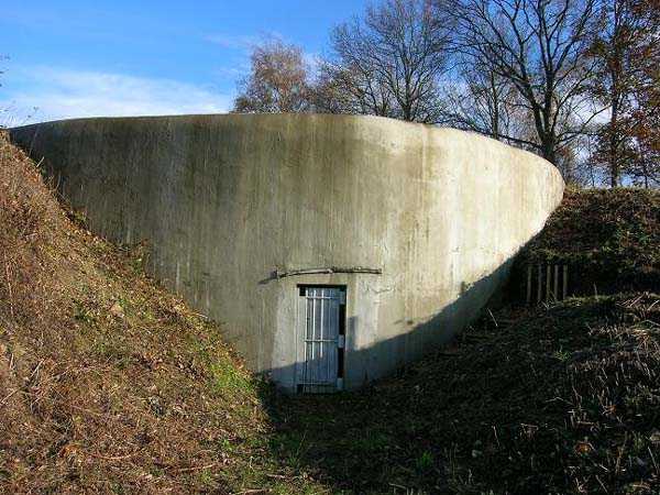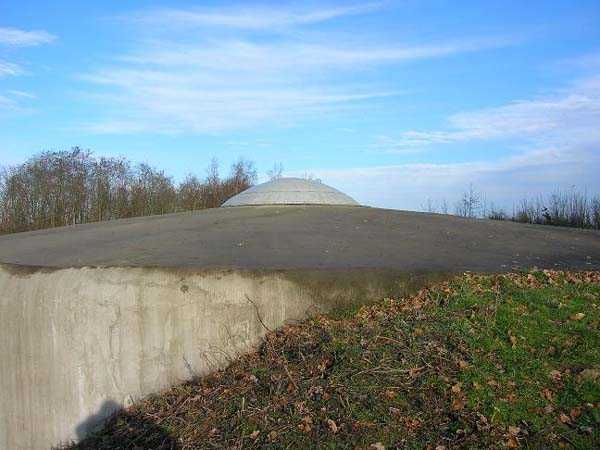 Fortifications belges de la seconde guerre mondiale, première ligne de défenses de Liège, position fortifiée de Liège, fort d'Eben-Emael, bloc 3, dit Coupole Nord. Encore une construction qui ne manque pas d'intérrêt. Un bloc tourelle éclipsable pour deux canons de 75 mais qui cette fois ne dispose ni de casemates ni de cloches pour la défense rapprochée, celle-ci devant être assurée par Mi-Nord et Mi-Sud. En lieu et place, coupole nord est muni d'une sortie d'infanterie sur le massif central. Sortie orientée côté ami, comme pour les blocs 1 et 2, et dotée d'un double barrage de poutrelles pour empiller des sacs de sable et d'une forte grille. La grille comme la couple ont été attaquées par les parachustiste allemands. Les poutrelles n'ont pas cédé mais la grille a été arrachée et le béton au sol a un peu souffert et a été réparé récemment. La coupole a fait l'objet d'une attaque par charge creuse qui a laissé un trou de près de quinze centimètres de profondeur dans la calotte cuirassée sans toutefois la percer. L'impact a néanmoins du être largement suffisant pour secouer sérieusement les occupants qui auraient pu s'y trouver. Quoi qu'il en soit, cette coupole n'a plus participé à la défense de l'ouvrage après son attaque. Les Belges pouvant à tout instant craindre une nouvelle offensive, ne l'ont plus occupée.