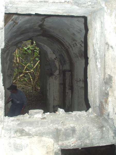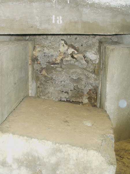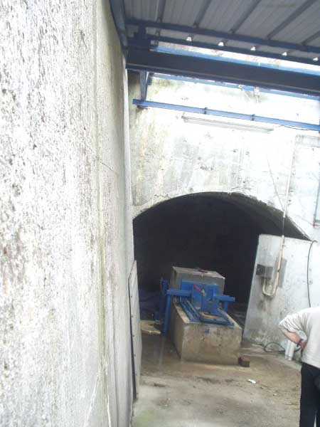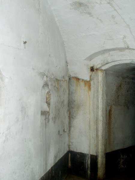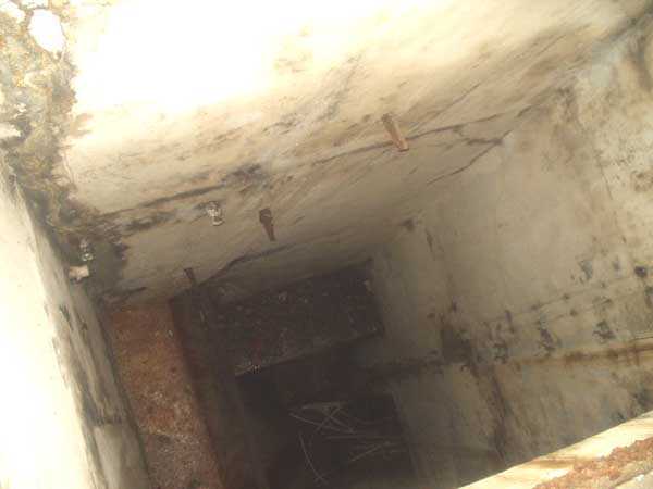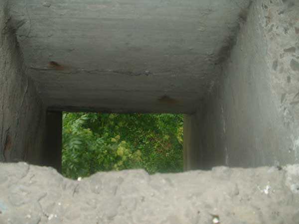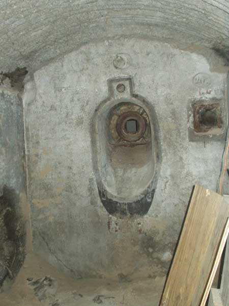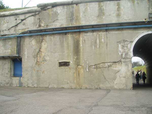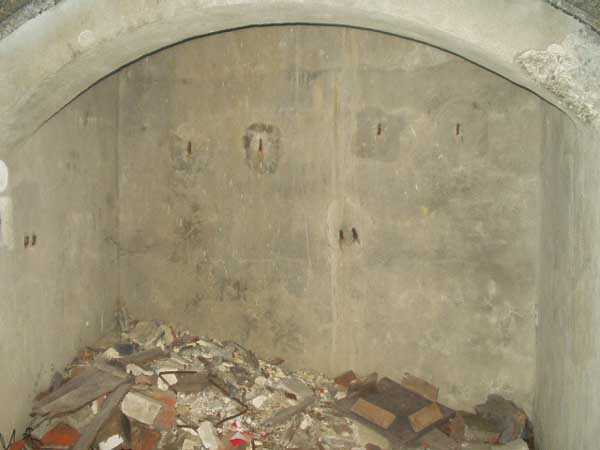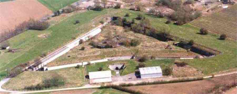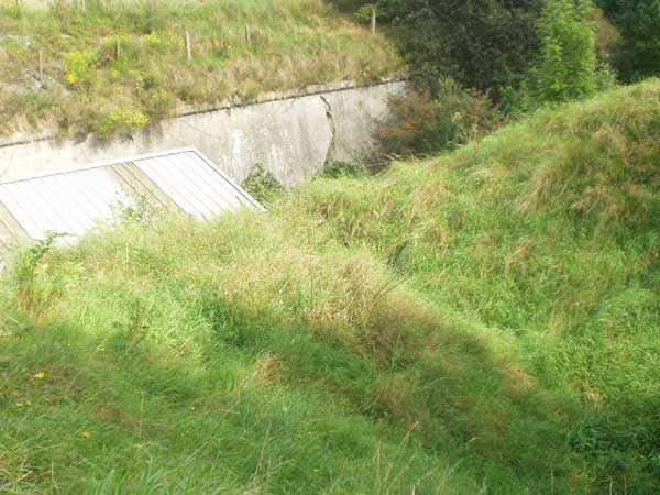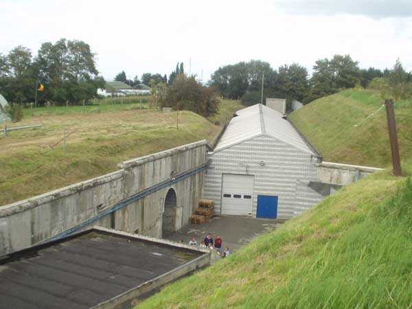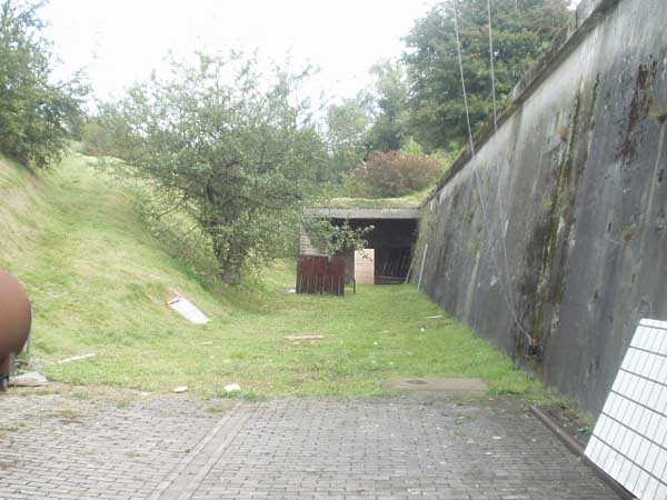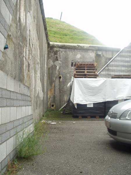 Évegnée (Fort) FPL, east of the city, 1888-1892. +/- 240 m/asl. 1 cupola 2 x 15 cm, 1 cupola 1 x 21 cm, 2 cupolas 1 x 12 cm, 3 turrets 1 x 5.7 cm, 1 armored searchlight, 6 cannons 5.7 cm for flanking. Only small triangular fort of the FPL to have a curtain wall at the gorge. The oval German air intakes of 1915-1916 are visible on the glacis. Rearmed during the interwar period, it is the only one with an emergency exit opening onto a side passage from the gallery leading to the air tower. It is now occupied by the company Forges de Zeebrugge which carries out rocket propulsion tests there. It is completely stripped of metal, except for the air tower which is splendid. Access forbidden.