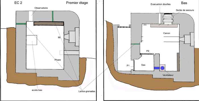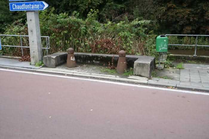 Befestigte Stellung Lüttich, zweite Widerstandslinie, Intervall Embourg-Chaudfontaine, Intervallunterstand EC2, Typ Gegenstoß, zwei Ebenen, liegt an der Straße N61 am Ausgang von Chaudfontaine in Richtung Lüttich und überwacht und sperrt diesen Ausgang. Im Erdgeschoss befinden sich der Eingang, ein 47-mm-Kanon auf Kasemattlafette und der Notausgang, im Obergeschoss ein Maschinengewehr und ein Scheinwerfer (zuerst vom Typ "Magondeau" = Sauerstoff-Acetylen-Brenner, der eine Thorium-Pille erhitzt – 1939 ersetzt durch einen Scheinwerfer vom Typ "Willock-Bottin" = elektrisch + Akkumulatoren – nach dem Anschluss des Unterstands an das zivile Stromnetz durch ein 110-V-Erdkabel). Besonderheit: Ein Gang entlang der Rückseite des Unterstands führt zur Eingangsschleuse. Dies wurde realisiert, um den Eingang der Schleuse vor möglichem herabfallendem Gestein zu schützen. Vor dem Unterstand sind noch einige Kabelanschlüsse und ein Sperrtyp-C-Sockel (Cointet) vorhanden. Das Interesse liegt jedoch in der Erhaltung der C-Garage, die auch die Wachstube des Unterstands beherbergte. Diese Garage ist über der Vesdre auskragend und hat heute den Bau einer Bushaltestelle ermöglicht. © Emile Coenen †