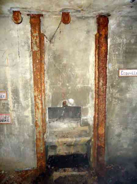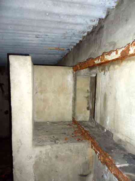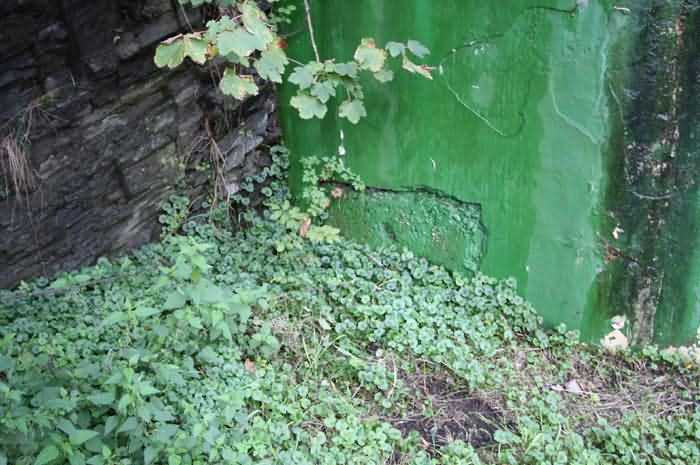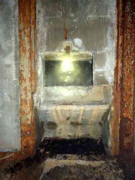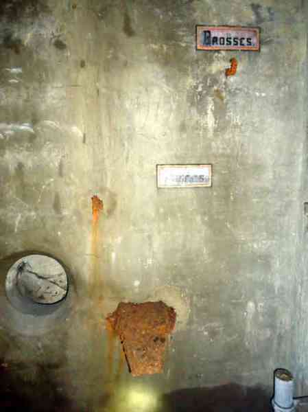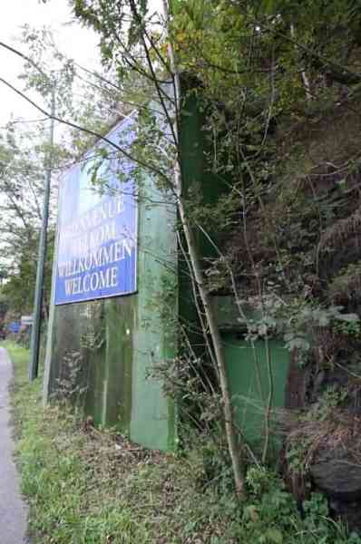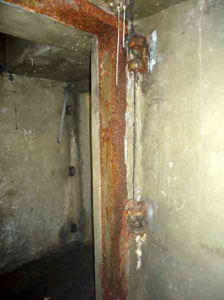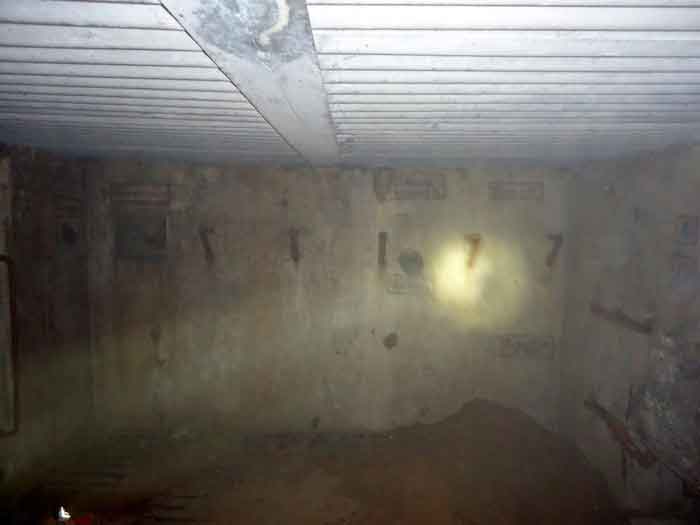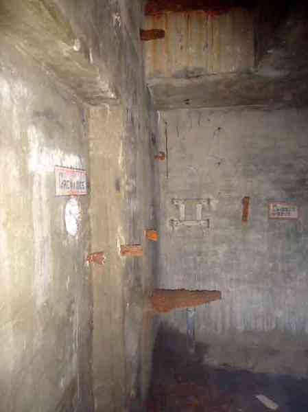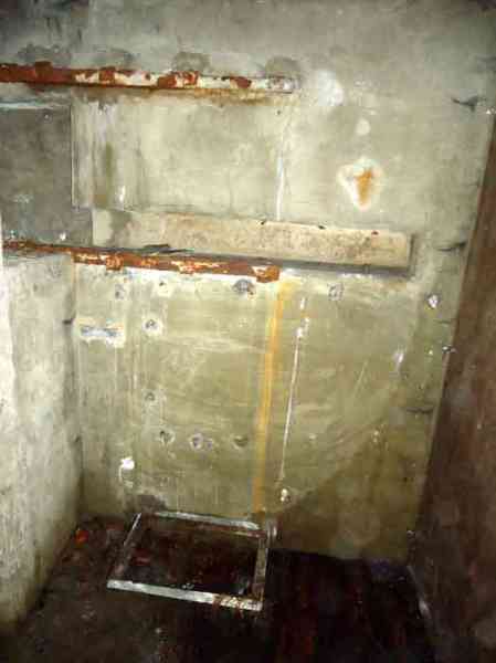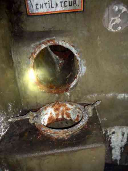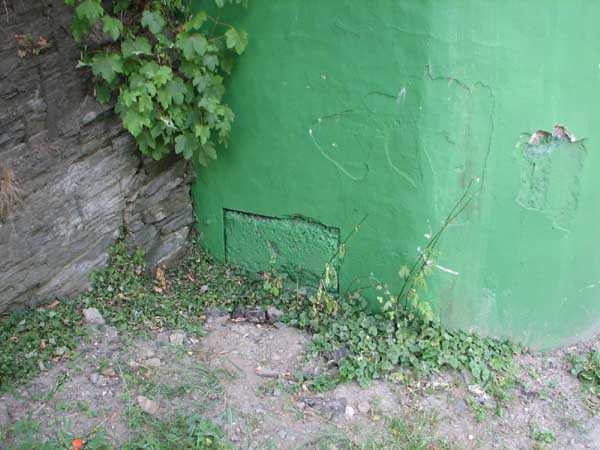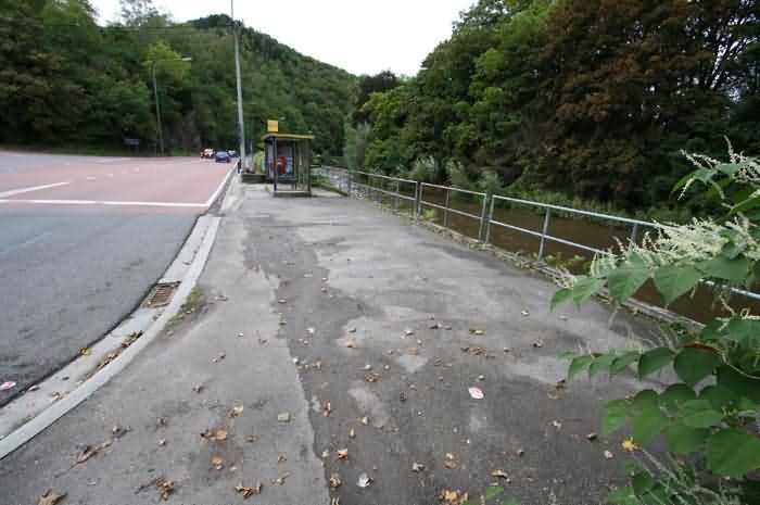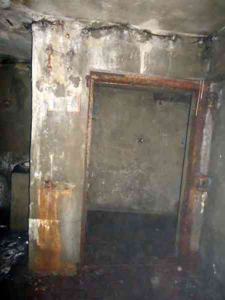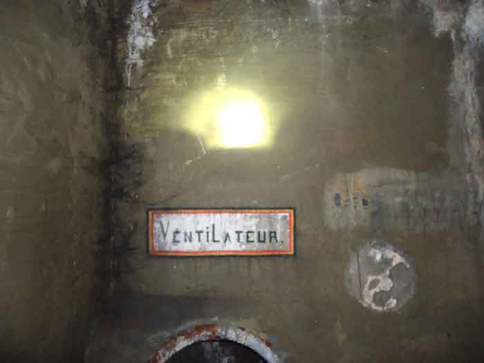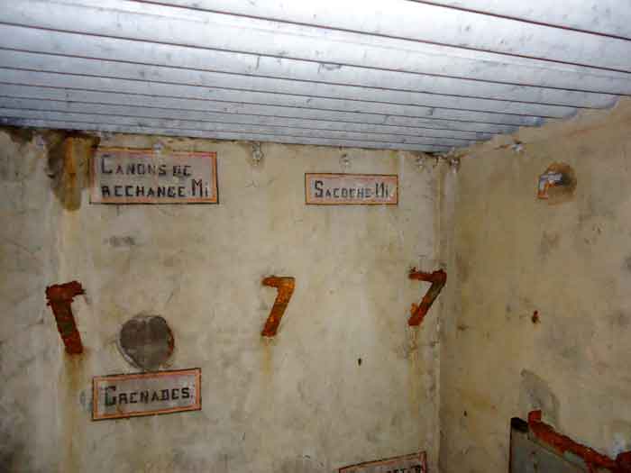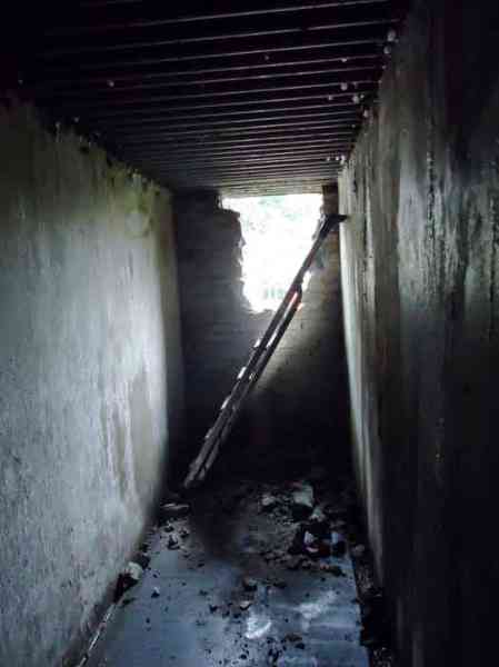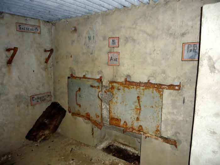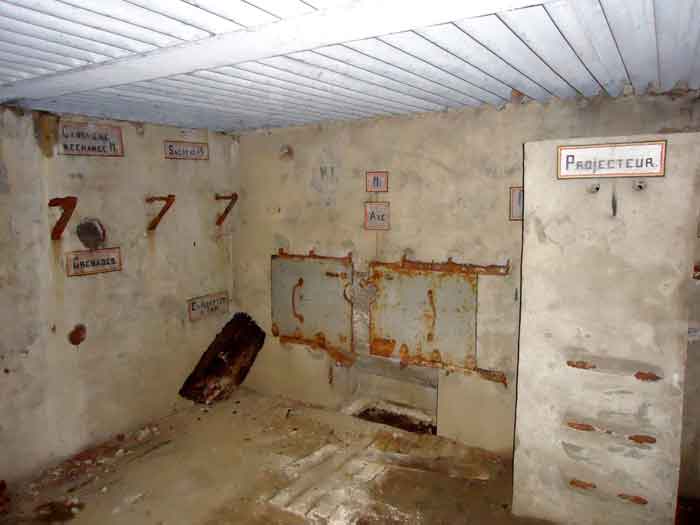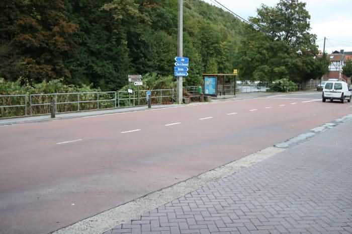 Fortified Position of Liège, second line of resistance, Embourg-Chaudfontaine interval, interval shelter EC2 of the counter-assault type with two levels, is located along the N61 road at the exit of Chaudfontaine when going towards Liège and monitors and blocks this exit. It comprises on the ground floor the entrance, a 47 mm gun on casemate mount and the emergency exit and, on the upper floor, a machine gun and a searchlight (a first of the "Magondeau" type = oxy-acetylene torch heating a thorium pellet – replaced in 1939 by a projector of the "Willock-Bottin" type = electric + storage batteries – following the connection of the shelter to the civilian electrical network by an underground 110 V cable). A particular feature, a corridor along the rear face of the shelter leads to the entrance airlock. This was done to protect the airlock entrance from possible falling rock fragments. In front of the shelter, a few cable terminals and a type C (Cointet) barrier base remain. But the interest lies in the conservation of garage C which also comprised the shelter's guardroom. This garage is cantilevered over the Vesdre and today has allowed the construction of a bus shelter. © Emile Coenen †