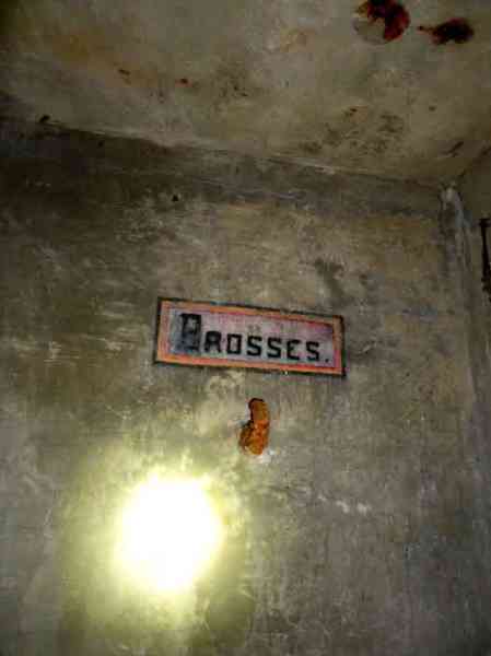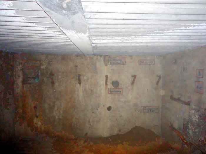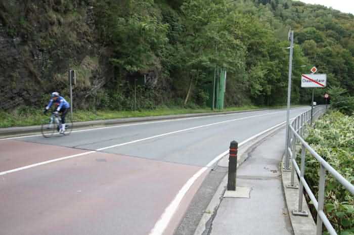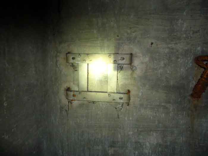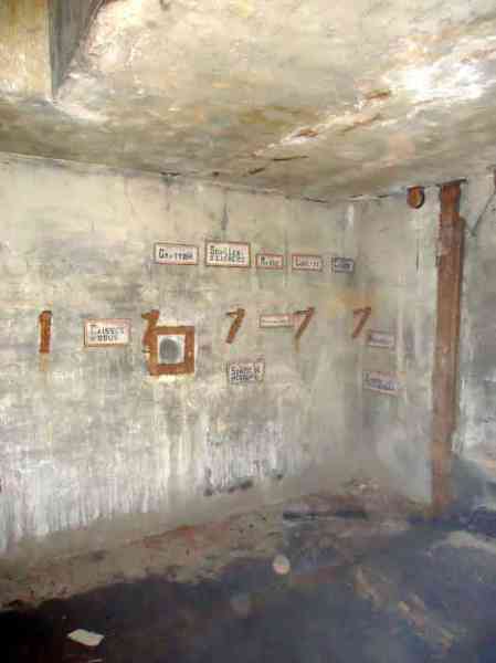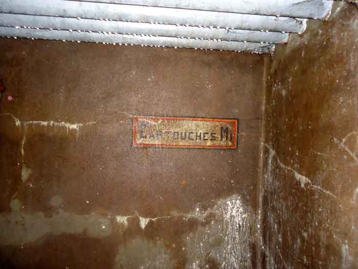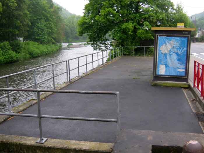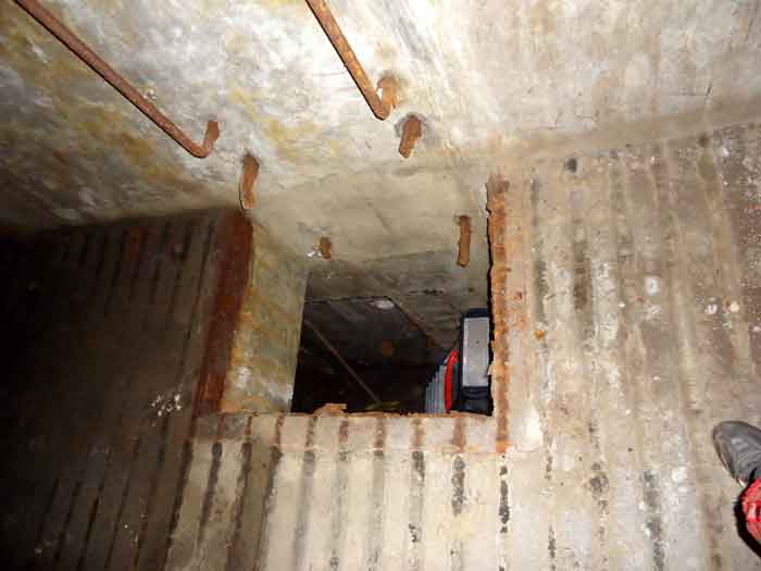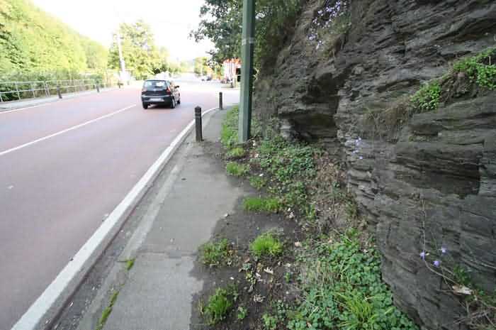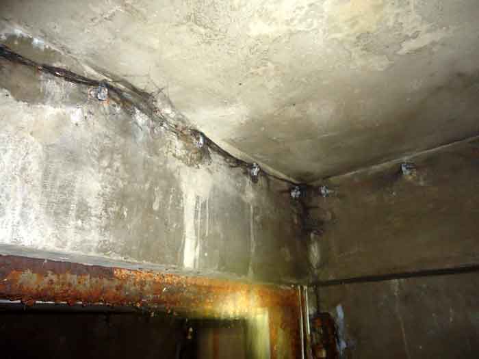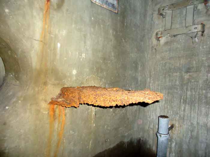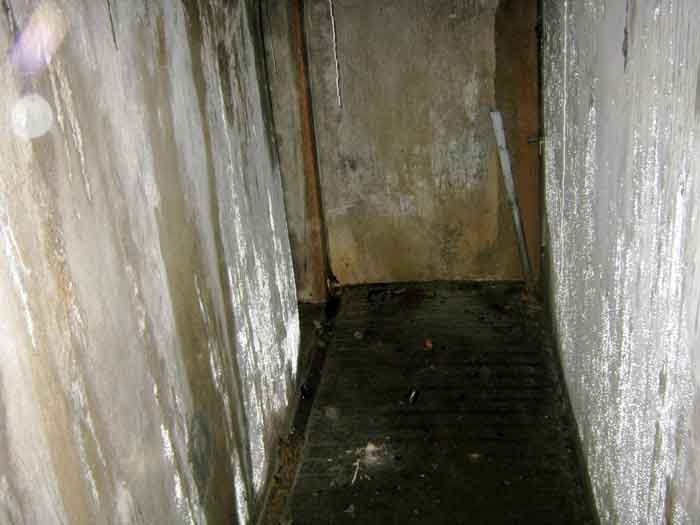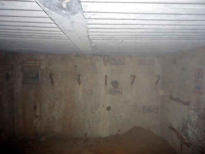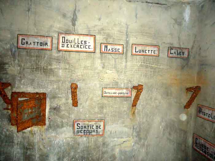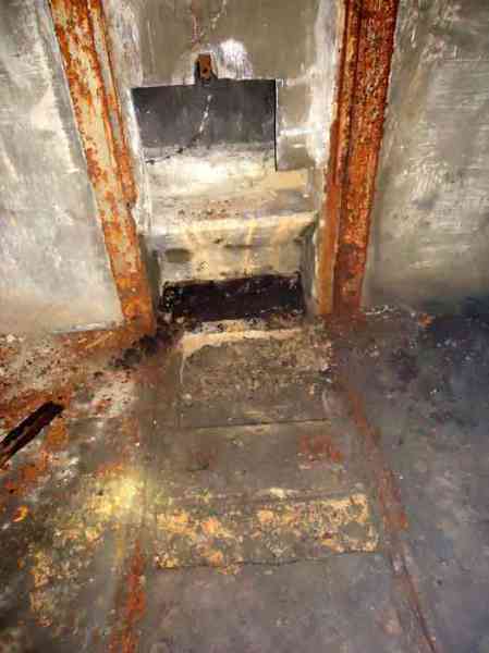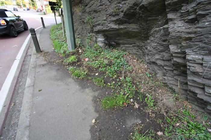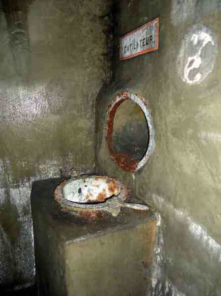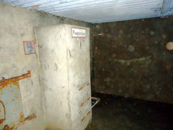 Fortified Position of Liège, second line of resistance, Embourg-Chaudfontaine interval, interval shelter EC2 of the counter-assault type with two levels, is located along the N61 road at the exit of Chaudfontaine when going towards Liège and monitors and blocks this exit. It comprises on the ground floor the entrance, a 47 mm gun on casemate mount and the emergency exit and, on the upper floor, a machine gun and a searchlight (a first of the "Magondeau" type = oxy-acetylene torch heating a thorium pellet – replaced in 1939 by a projector of the "Willock-Bottin" type = electric + storage batteries – following the connection of the shelter to the civilian electrical network by an underground 110 V cable). A particular feature, a corridor along the rear face of the shelter leads to the entrance airlock. This was done to protect the airlock entrance from possible falling rock fragments. In front of the shelter, a few cable terminals and a type C (Cointet) barrier base remain. But the interest lies in the conservation of garage C which also comprised the shelter's guardroom. This garage is cantilevered over the Vesdre and today has allowed the construction of a bus shelter. © Emile Coenen †