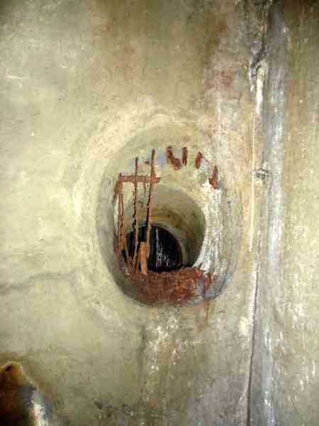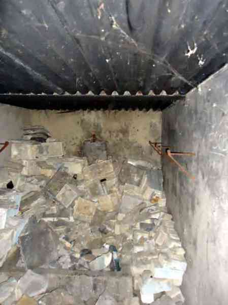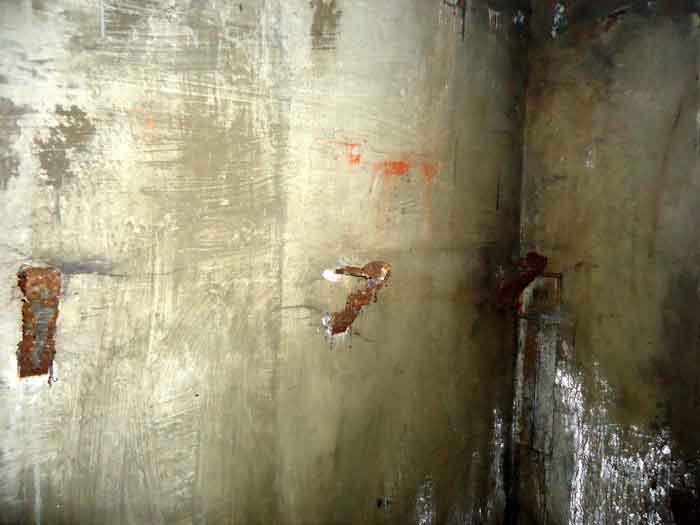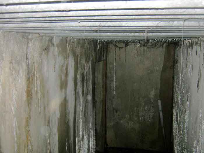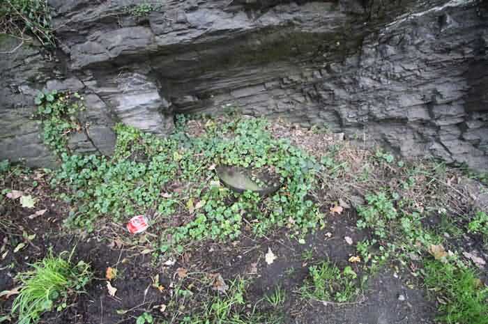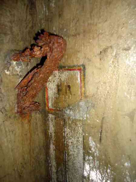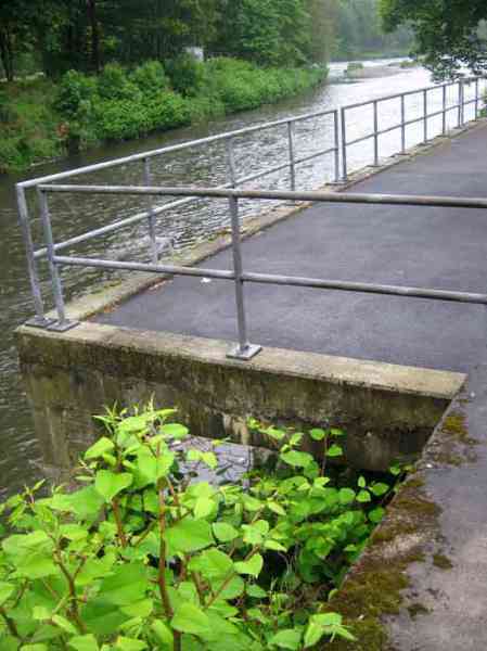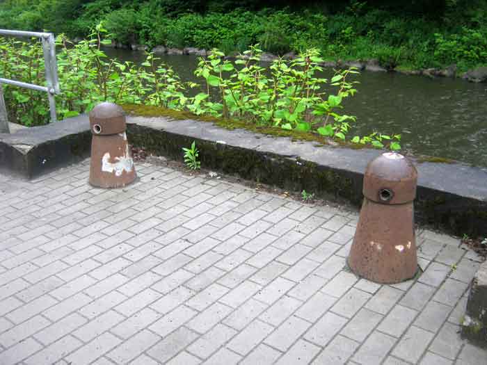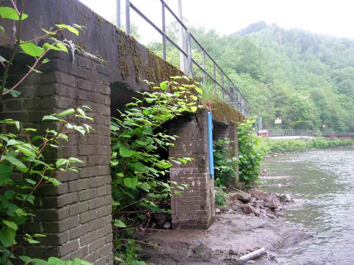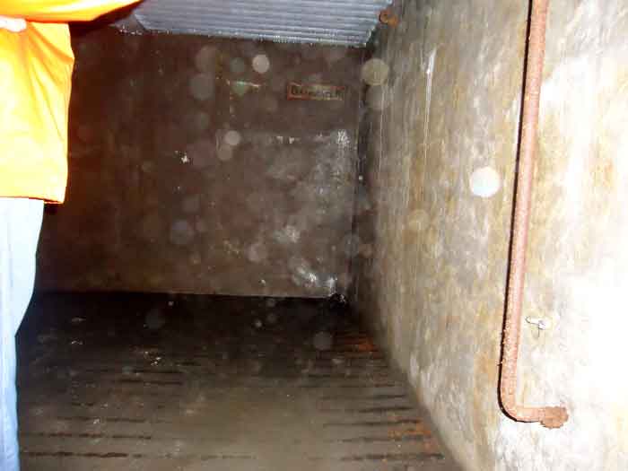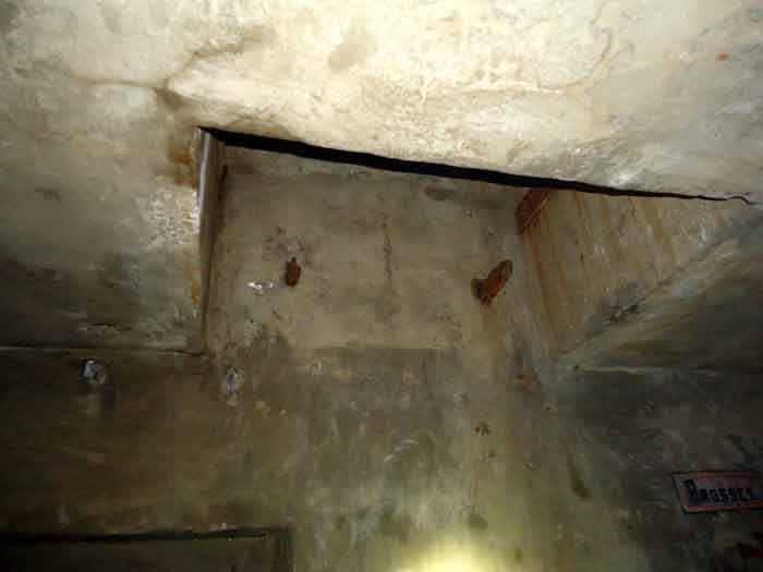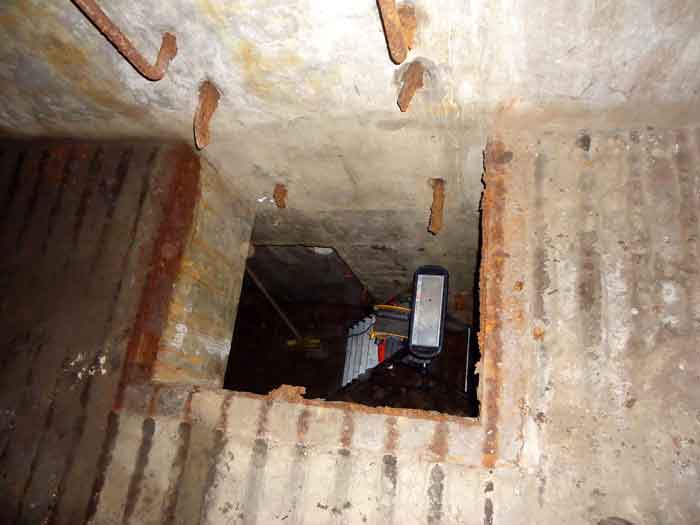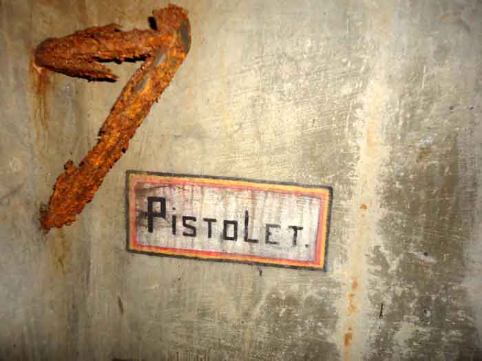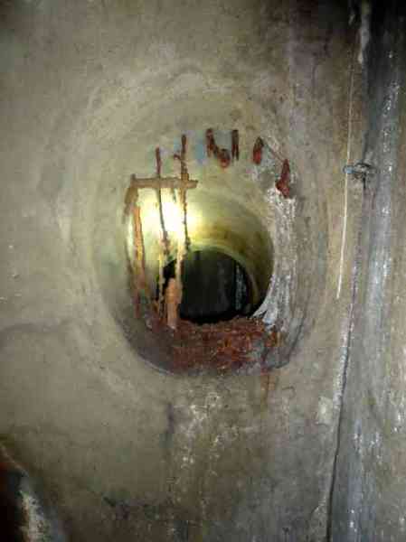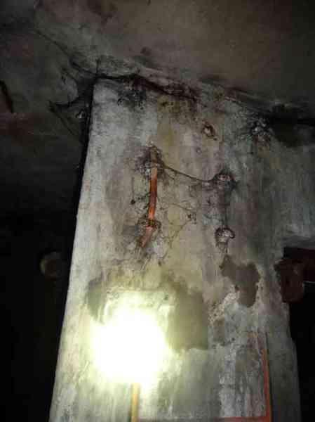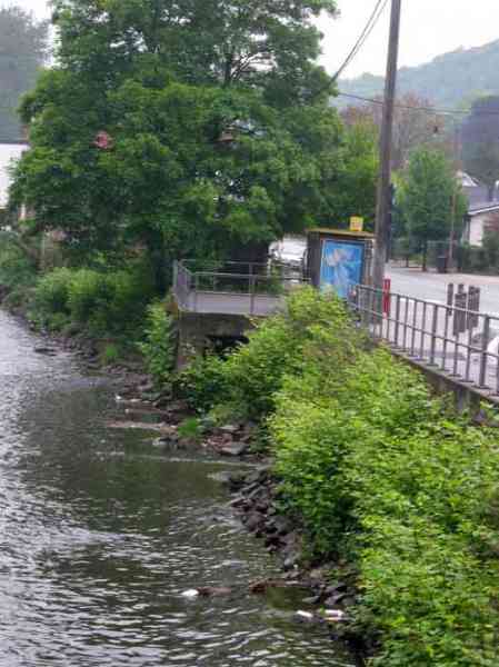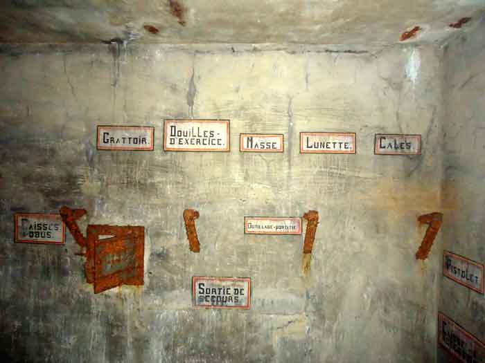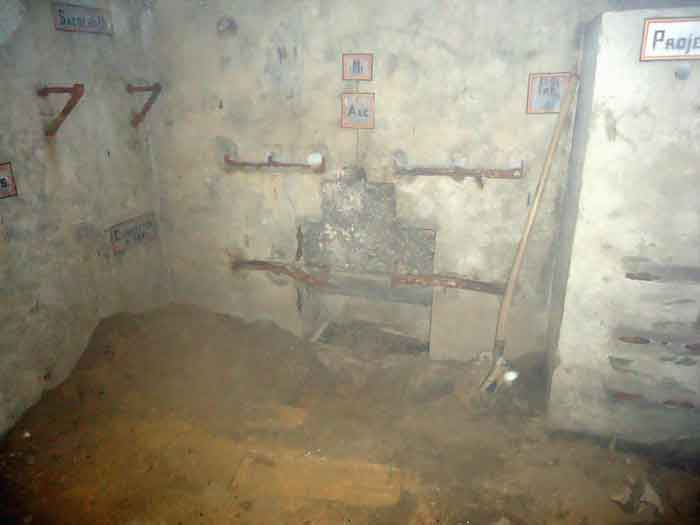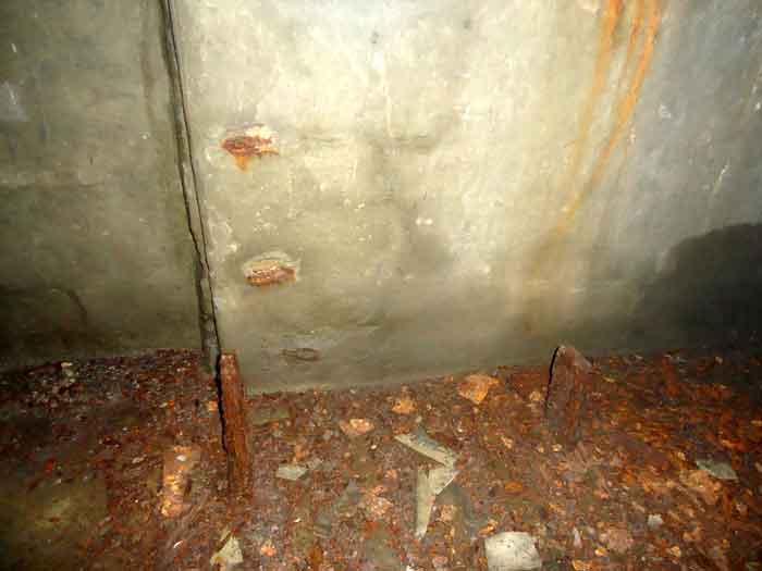 Fortified Position of Liège, second line of resistance, Embourg-Chaudfontaine interval, interval shelter EC2 of the counter-assault type with two levels, is located along the N61 road at the exit of Chaudfontaine when going towards Liège and monitors and blocks this exit. It comprises on the ground floor the entrance, a 47 mm gun on casemate mount and the emergency exit and, on the upper floor, a machine gun and a searchlight (a first of the "Magondeau" type = oxy-acetylene torch heating a thorium pellet – replaced in 1939 by a projector of the "Willock-Bottin" type = electric + storage batteries – following the connection of the shelter to the civilian electrical network by an underground 110 V cable). A particular feature, a corridor along the rear face of the shelter leads to the entrance airlock. This was done to protect the airlock entrance from possible falling rock fragments. In front of the shelter, a few cable terminals and a type C (Cointet) barrier base remain. But the interest lies in the conservation of garage C which also comprised the shelter's guardroom. This garage is cantilevered over the Vesdre and today has allowed the construction of a bus shelter. © Emile Coenen †