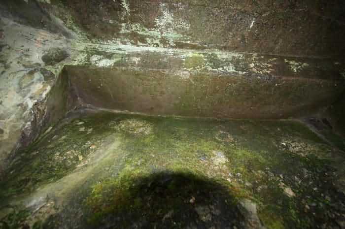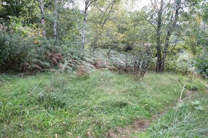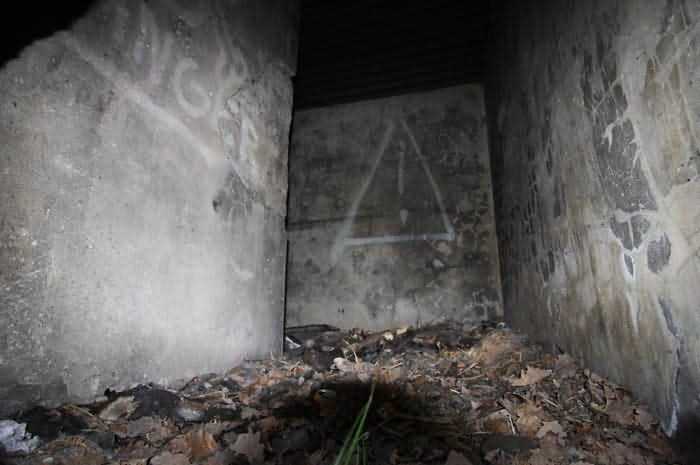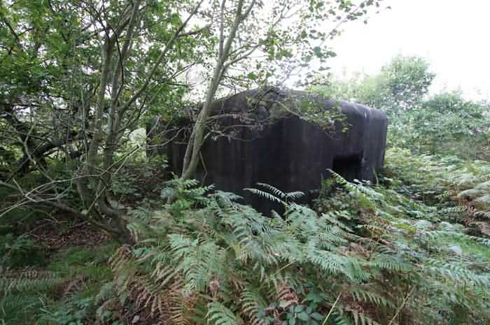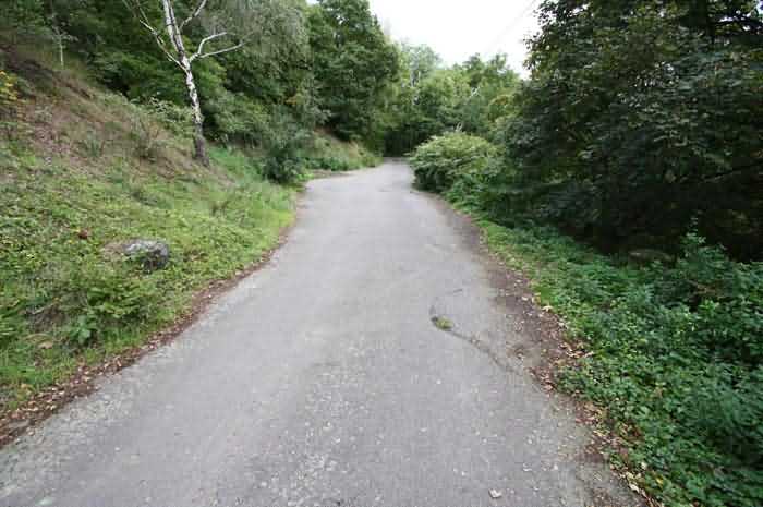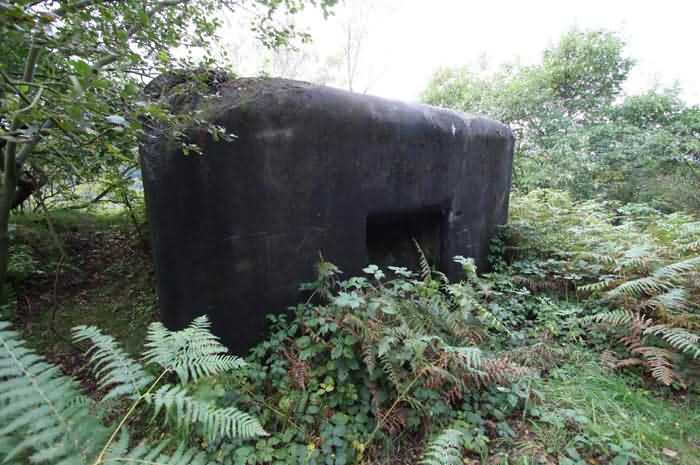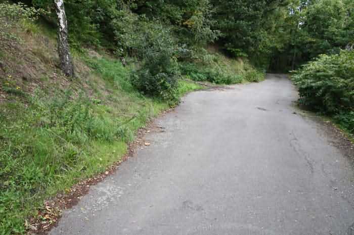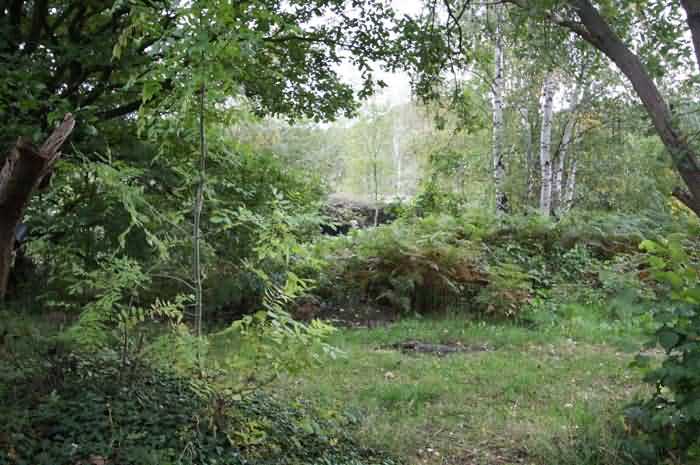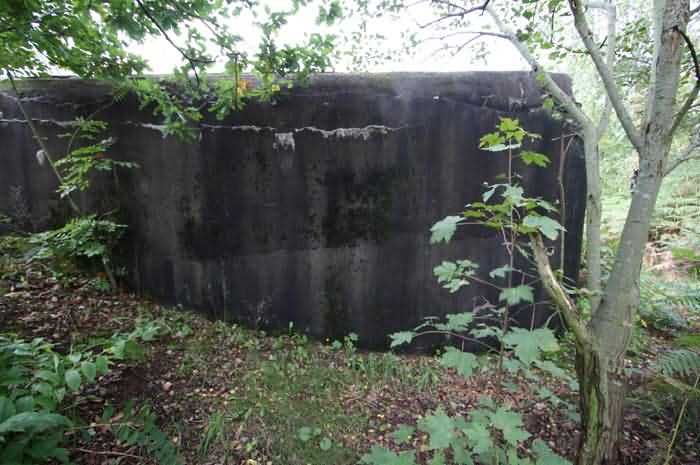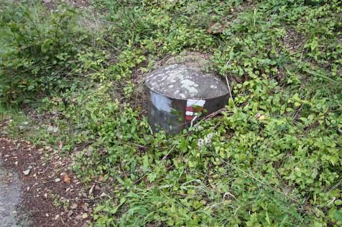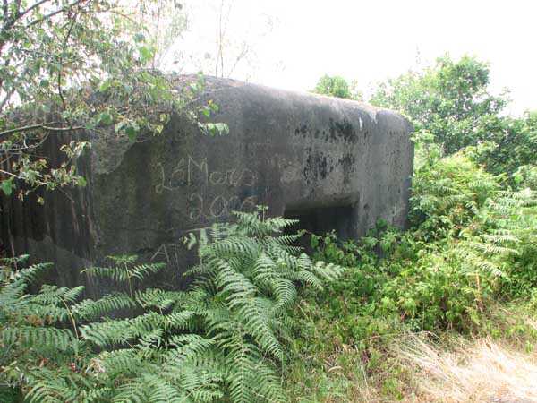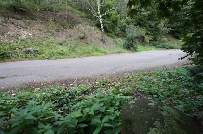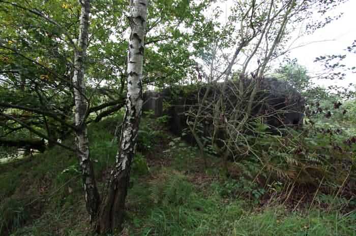 Fortified Position of Liège, second line of resistance, Embourg-Chaudfontaine interval, interval shelters. Interval shelter EC3 is located on the climb towards the fort of Chaudfontaine passing behind the casino. Here too it is an atypical shelter with a single embrasure but this time with only one level. The walled-up entrance has been partially opened but it is hardly inviting. 75 meters before the shelter there are two C-type barrier bases still visible, one on each side of the road, and a recess made in the rock bordering the Chemin de la Lemmeterie. It is actually the garage for the two C-type barriers. Also, a small path, leading towards the air intake, starts between the shelter and the barrier bases. This path is the old relief path for the fort's garrison. © Emile Coenen †