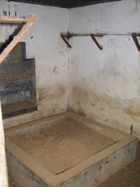 Where the others were condemned by the E40 motorway and the industrial estate, the typical shelter with two machine gun embrasures and no observation cupola serves as a cattle barn for the farmer whose small piece of meadow it occupies. Still equipped with its shelf consoles and at least one clay tray for the machine gun tripod, it is generally in good condition but a little loaded with slurry.