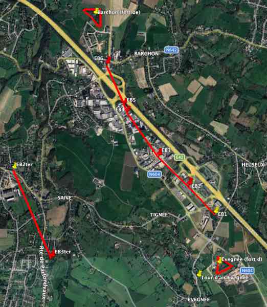 Opevněná pozice Lutych, druhá obranná linie. Interval OPL2 Évegnée čítá 8 pěchotních srubů na dvou obranných liniích, z nichž přežily pouze dva v důsledku chamtivosti, kterou někteří nazývají moderností nebo pokrokem… z velké části kvůli vytvoření dálnice E42 a z toho plynoucích průmyslových a obchodních zón.