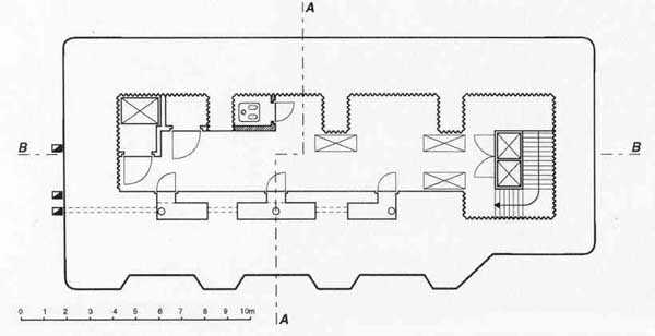 Die Pläne in den untenstehenden Abbildungen stellen die Kasematte Visé 2 dar. Die Anordnung ist für Maastricht 1 identisch, aber der Schacht befindet sich links und die 3 Schießkammern rechts. Die angegriffene Scharte ist die am Ende des Blocks, und auf dem Plan sieht man die Tür des Telefonraums, die durch das Geschütz blockiert wurde.