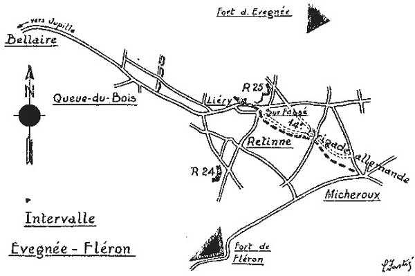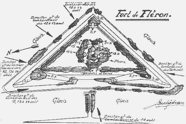 At 1:30 a.m., red flares rise from the Micheroux road, very close to the fort. An SOS signal sent by the enemy requesting the resumption of bombardments. Shells explode again on the fort and the men entrench themselves with difficulty under the ruined vaults of the work. The only gun still capable of firing is a 15 cm gun jammed horizontally, which sweeps the Micheroux road with canister shot. It soon ceases fire for lack of ammunition. Fortunately, the night only caused nine lightly wounded, two of whom, who had remained in the field, rejoin at daybreak.