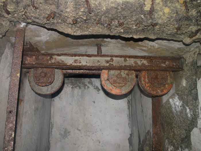After being opened to the public for a few days via the air intake duct, the fort once again sinks into oblivion. Only a few ventilation tubes remain visible at the location of the 75 mm cupolas at the salients, a small piece of the central massif with an infantry exit, and the back of the head casemate at the edge of the national road. Kris also unearthed for us the sewer outlet below the air tower.