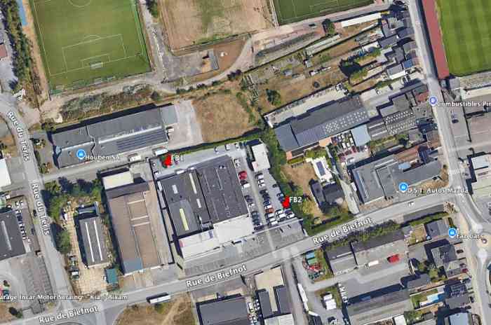 Fortified Position of Liège, second line of resistance, interval shelters. Shelter FB1, 113 m/asl, was located in the municipality of Seraing behind and to the left of the current Ford Matel Motors dealership, in the new Rue du Biefnot, 180 m west of Rue de la Boveries and 80 m west of shelter FB2 which acted in the opposite direction. It was destroyed in favor of urban expansion.