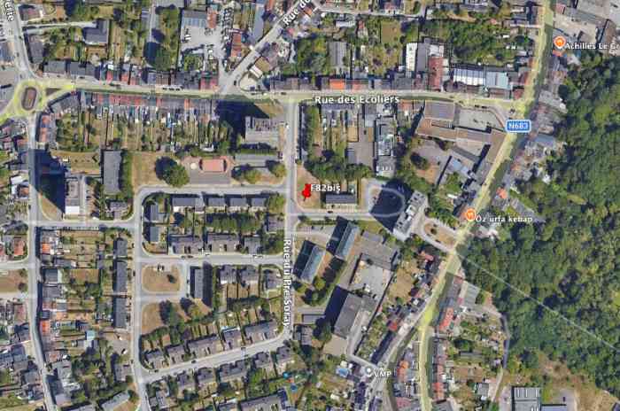 Shelter FB2bis, 127 m/asl, was located in the municipality of Seraing 100 m south of Rue des Écoliers, on the eastern edge of Rue de Pré Soray and Rue des Hirondelles. The creation of these latter two roads sealed the unnecessary destruction of the shelter which could well have remained in the place it occupied.